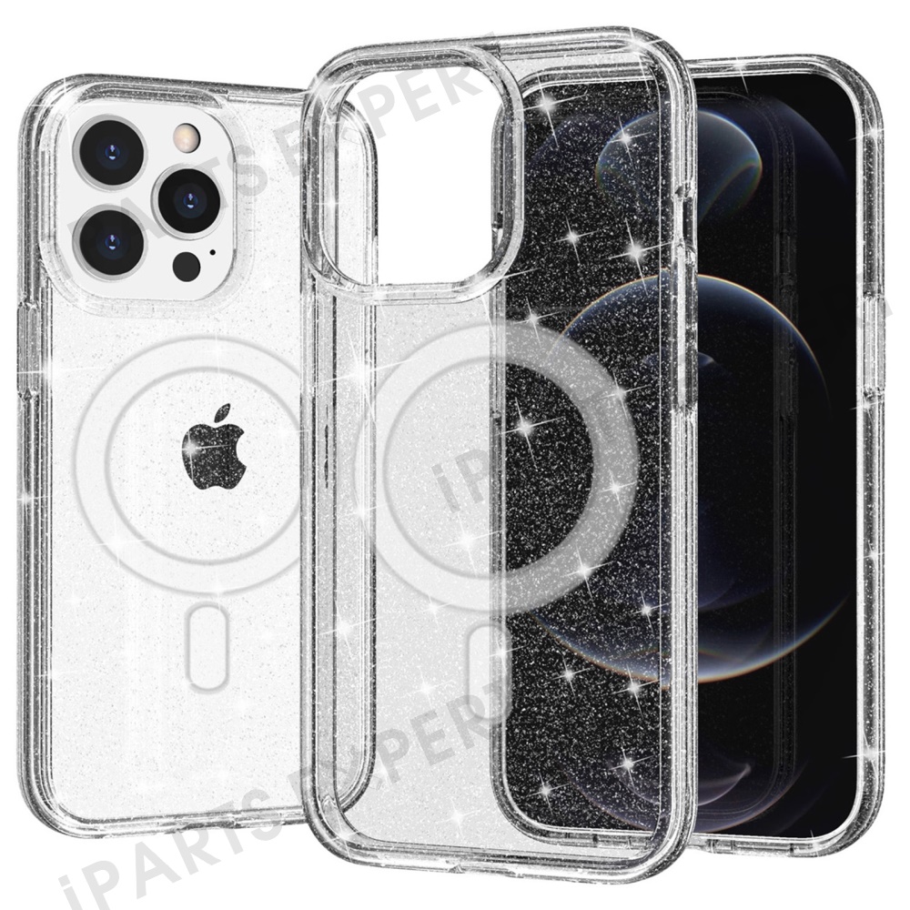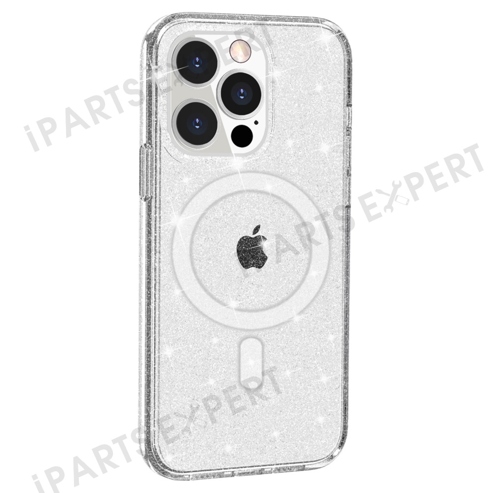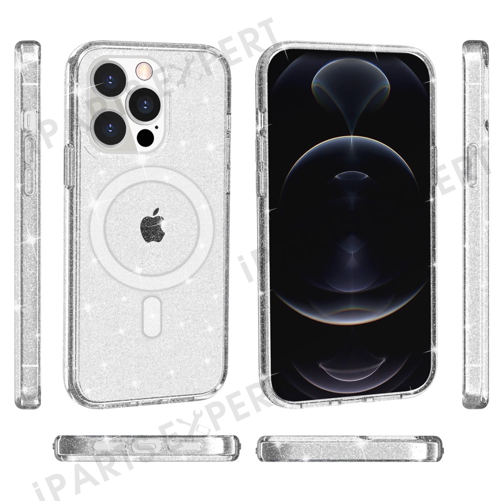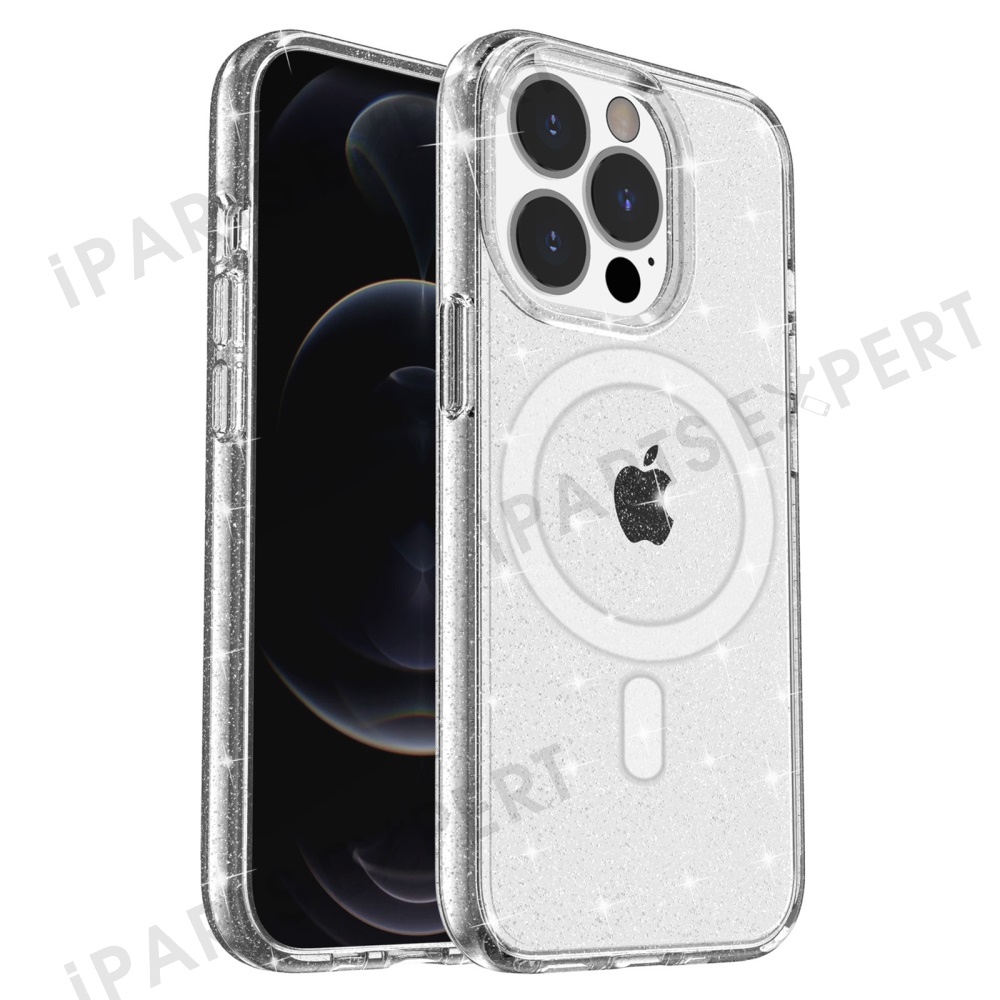 For iPhone 12 Pro / 12 Case Compatible with MagSafe Glitter Powder PC + TPU Phone Cover - White