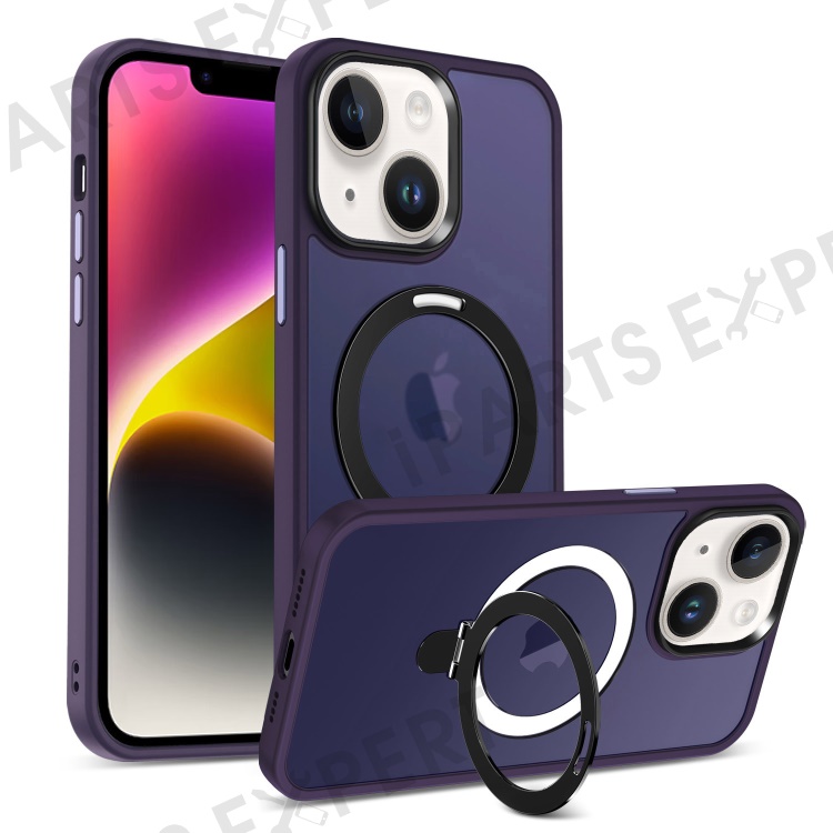 For iPhone 13 / 14 6.1 inch Compatible with MagSafe Phone Case PC+TPU Ring Kickstand Protective Cover - Dark Purple