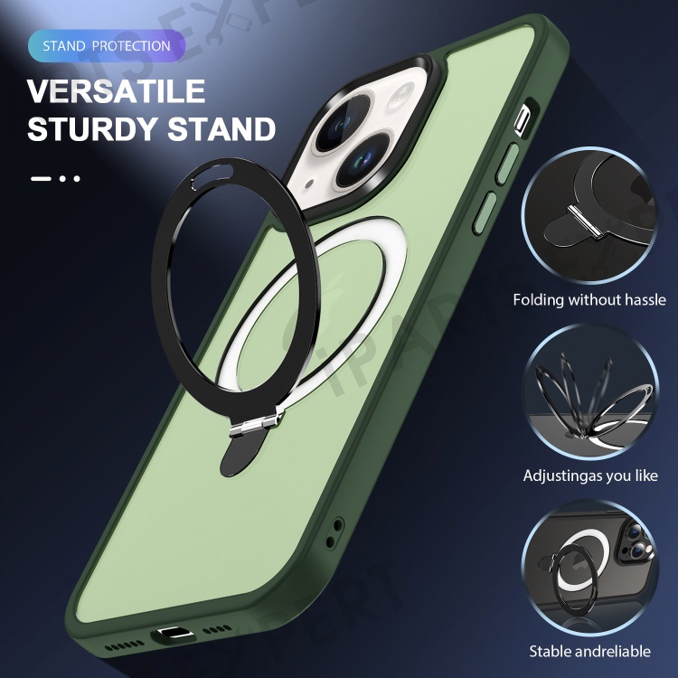 For iPhone 13 / 14 6.1 inch Compatible with MagSafe Phone Case PC+TPU Ring Kickstand Protective Cover - Green