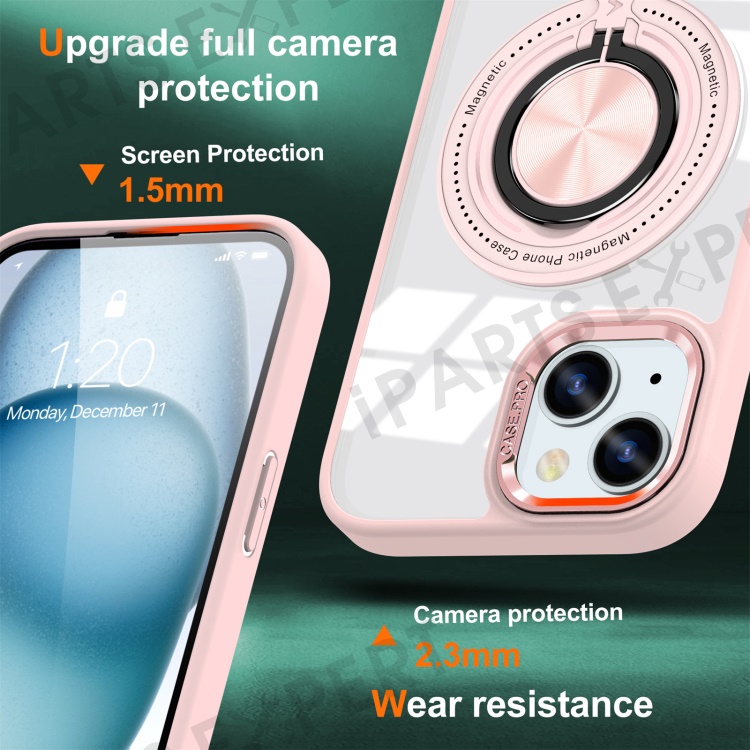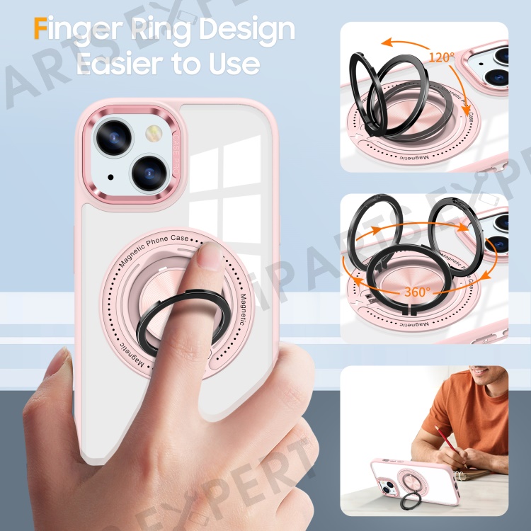 For iPhone 13 / 14 Case Compatible with MagSafe PC+TPU Kickstand Clear Phone Cover - Pink