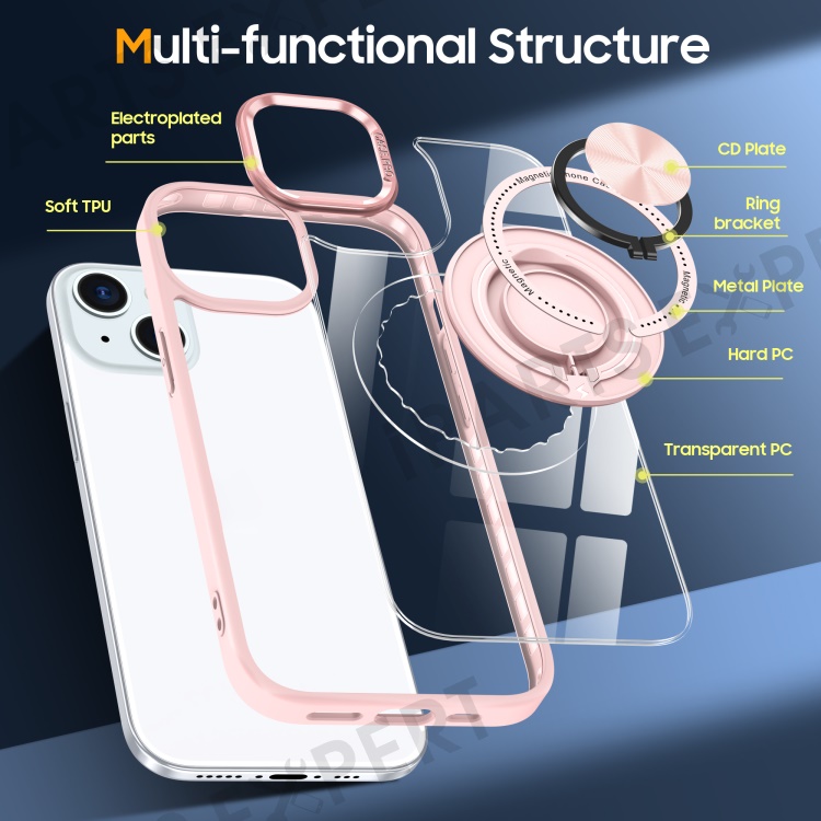- 【Multi-Layered Structure】This case combines multiple materials, including electroplated soft TPU, hard PC, and a metal ring bracket, for a robust and multifunctional design