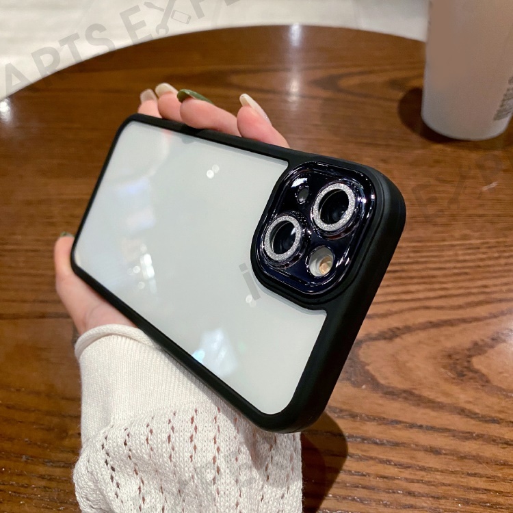 For iPhone 13 6.1 inch Electroplating Glitter Camera Lens Ring Phone Case Hard PC Soft TPU Shockproof Clear Cover - Black