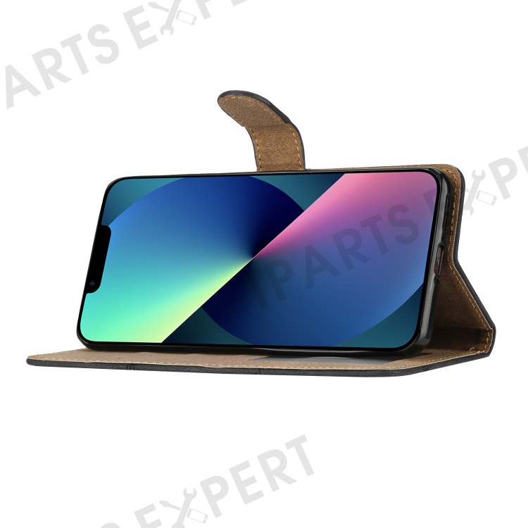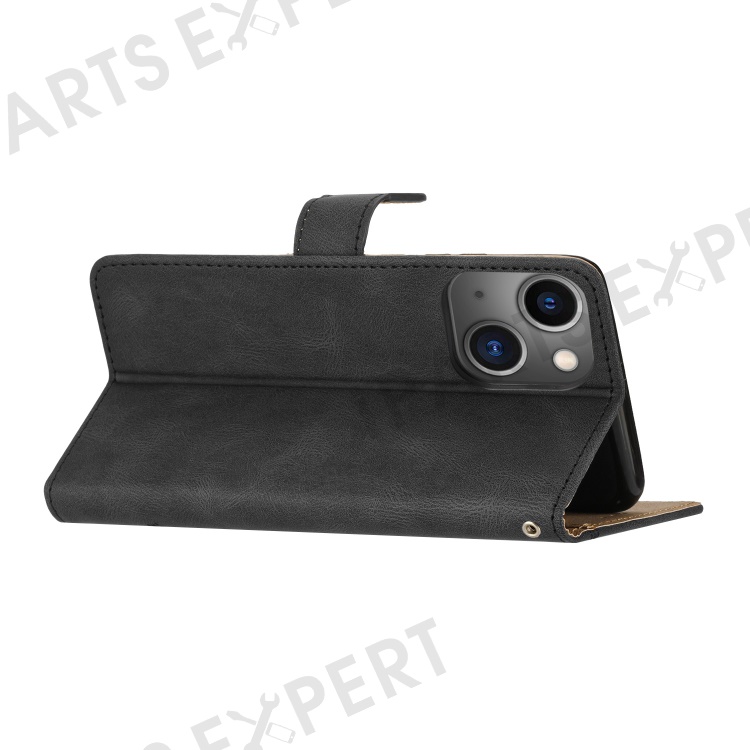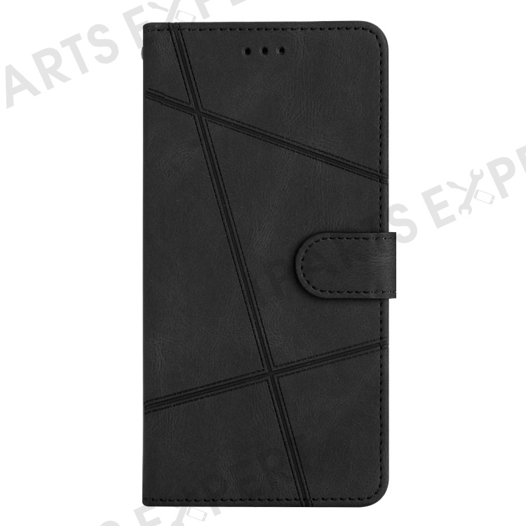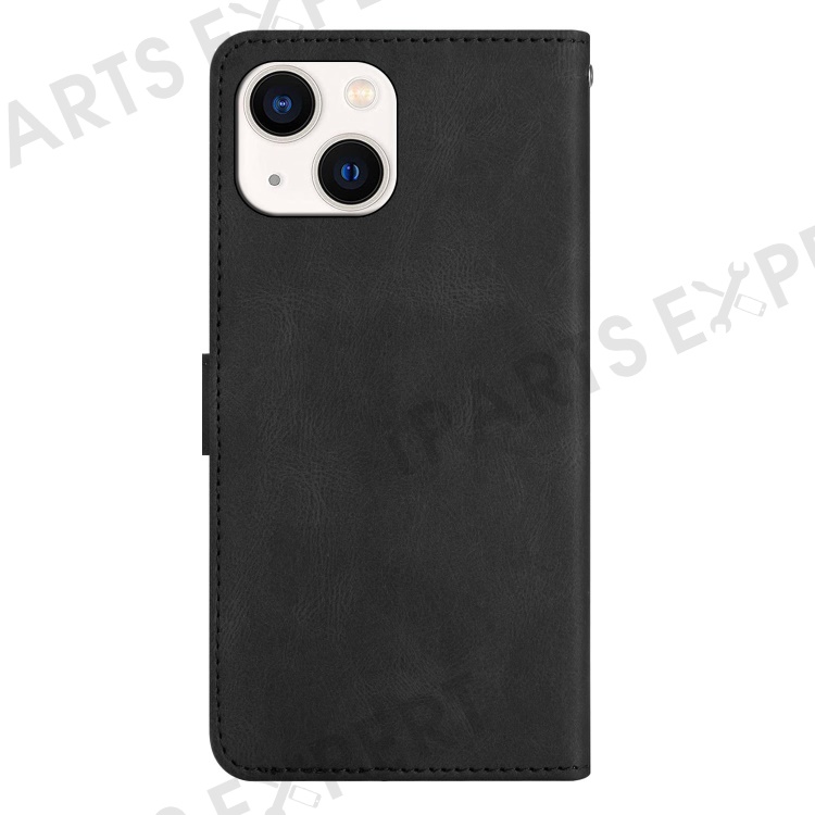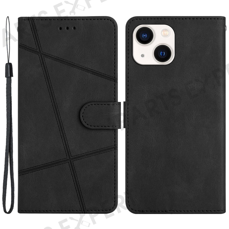 For iPhone 13 6.1 inch Phone Cover Imprinted Line Decor Wallet Crazy Horse Texture Stand Leather Phone Case with Strap - Black