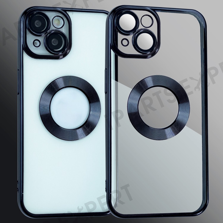 For iPhone 13 6.1 inch Soft TPU Electroplating Back Cover CD Texture Ring Logo Hole Design Phone Drop-proof Case with Lens Protection Film - Black