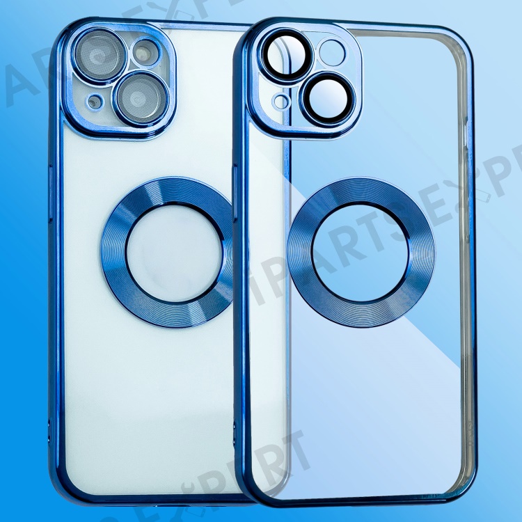 For iPhone 13 6.1 inch Soft TPU Electroplating Back Cover CD Texture Ring Logo Hole Design Phone Drop-proof Case with Lens Protection Film - Blue