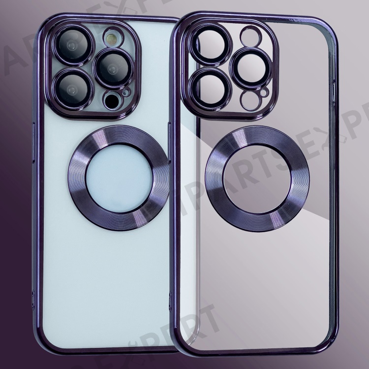 For iPhone 13 6.1 inch Soft TPU Electroplating Back Cover CD Texture Ring Logo Hole Design Phone Drop-proof Case with Lens Protection Film - Purple