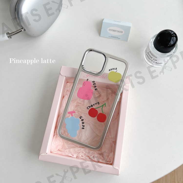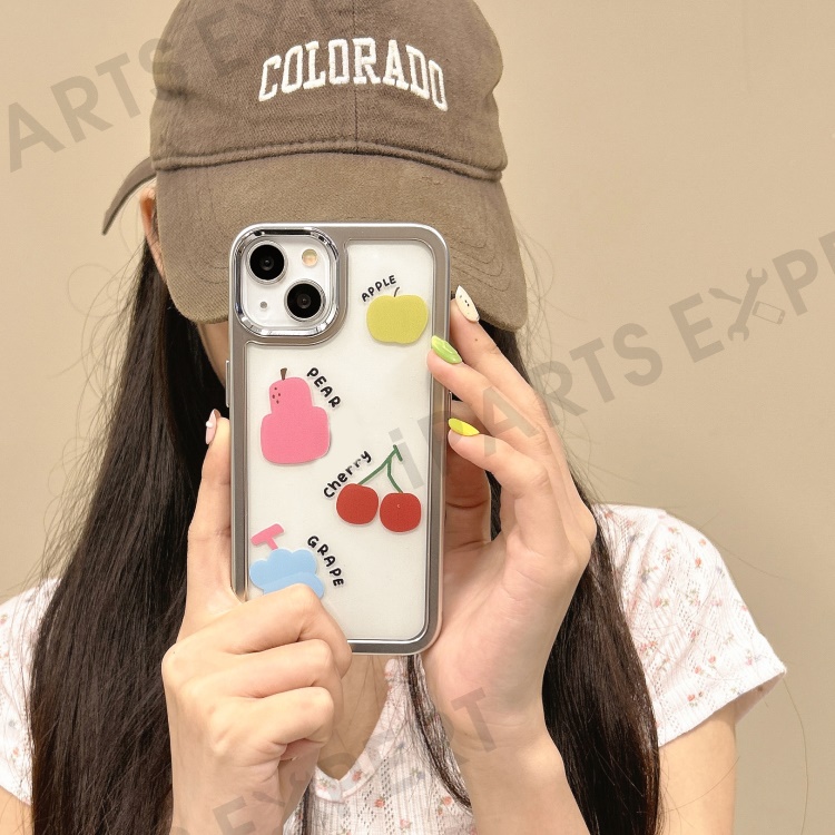 For iPhone 13 Case PC+TPU Phone Cover Silver Edge Pattern Design - Colorful Fruits