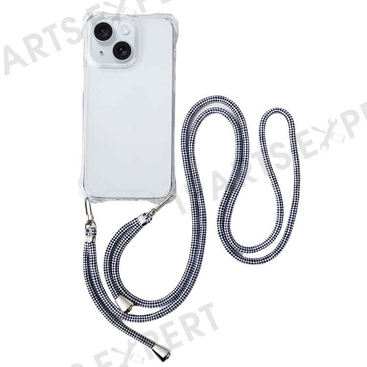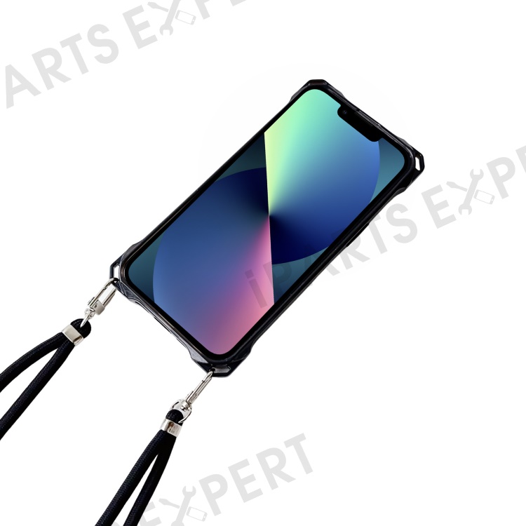 For iPhone 13 Case Reinforced Corner Drop Protection TPU Phone Cover with Thin Lanyard - Transparent