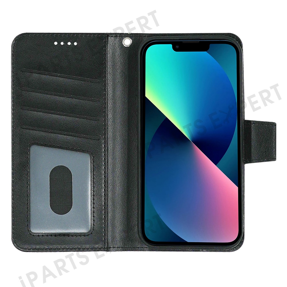 For iPhone 13 Case Stand Card Holder Wallet Leather Phone Cover - Black