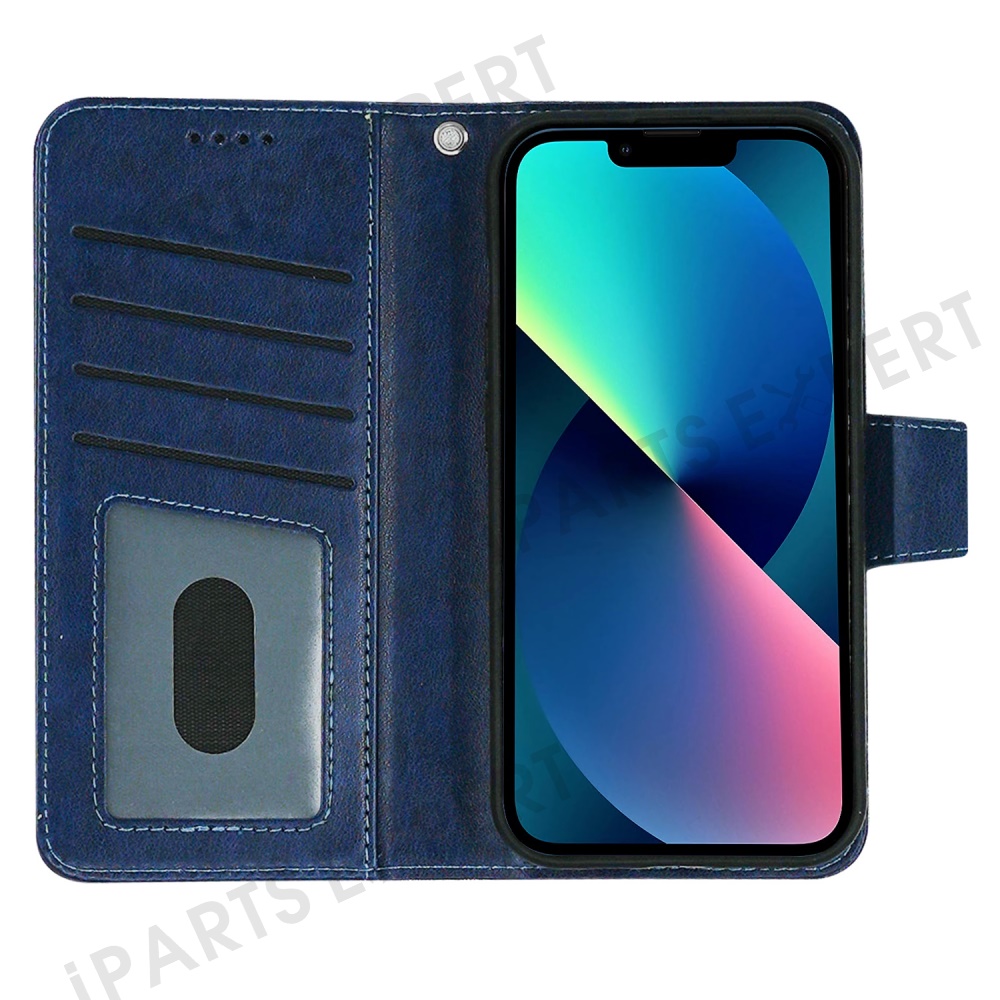 For iPhone 13 Case Stand Card Holder Wallet Leather Phone Cover - Blue