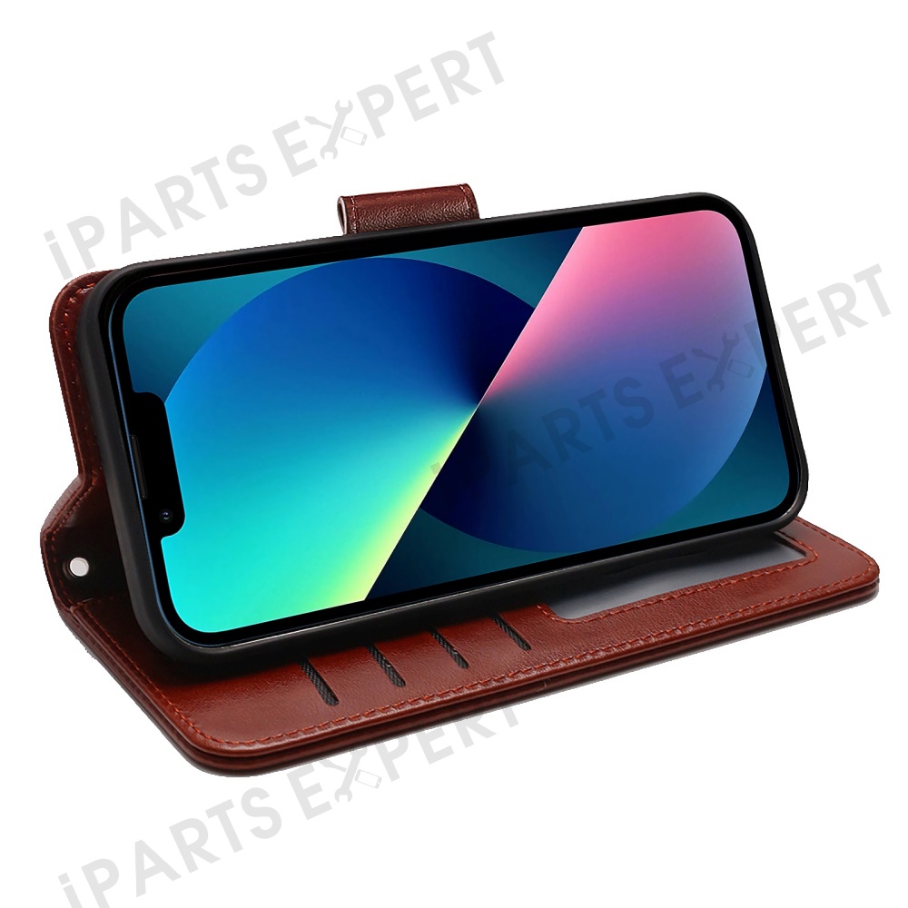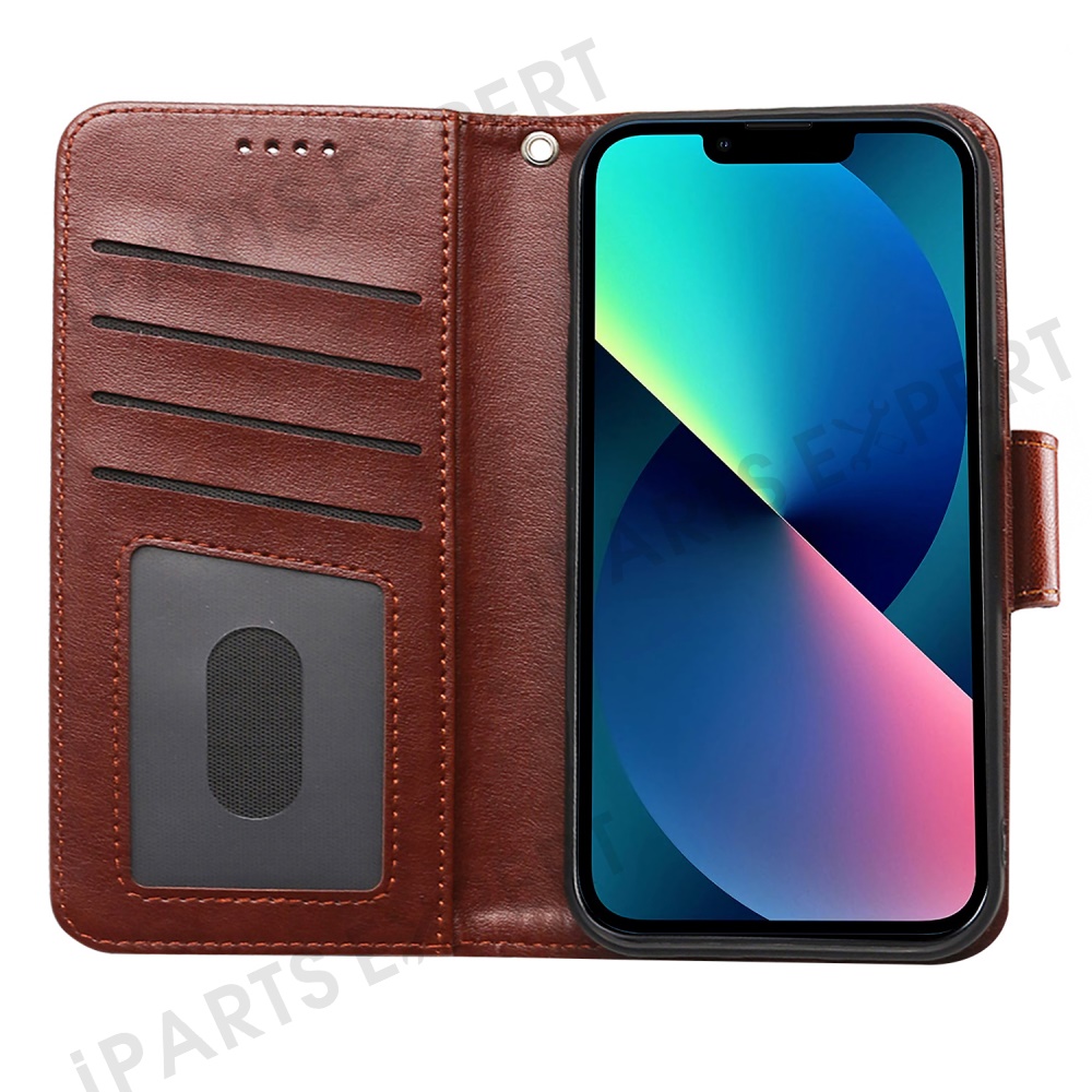 For iPhone 13 Case Stand Card Holder Wallet Leather Phone Cover - Brown