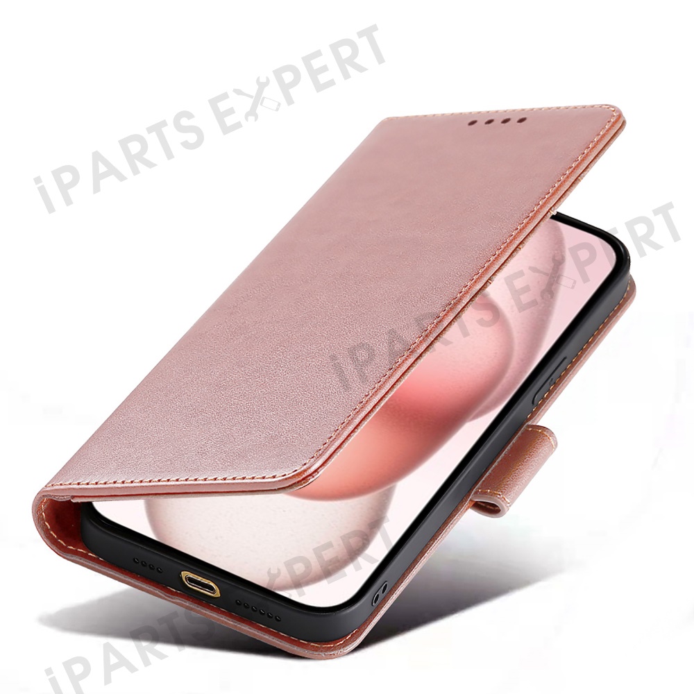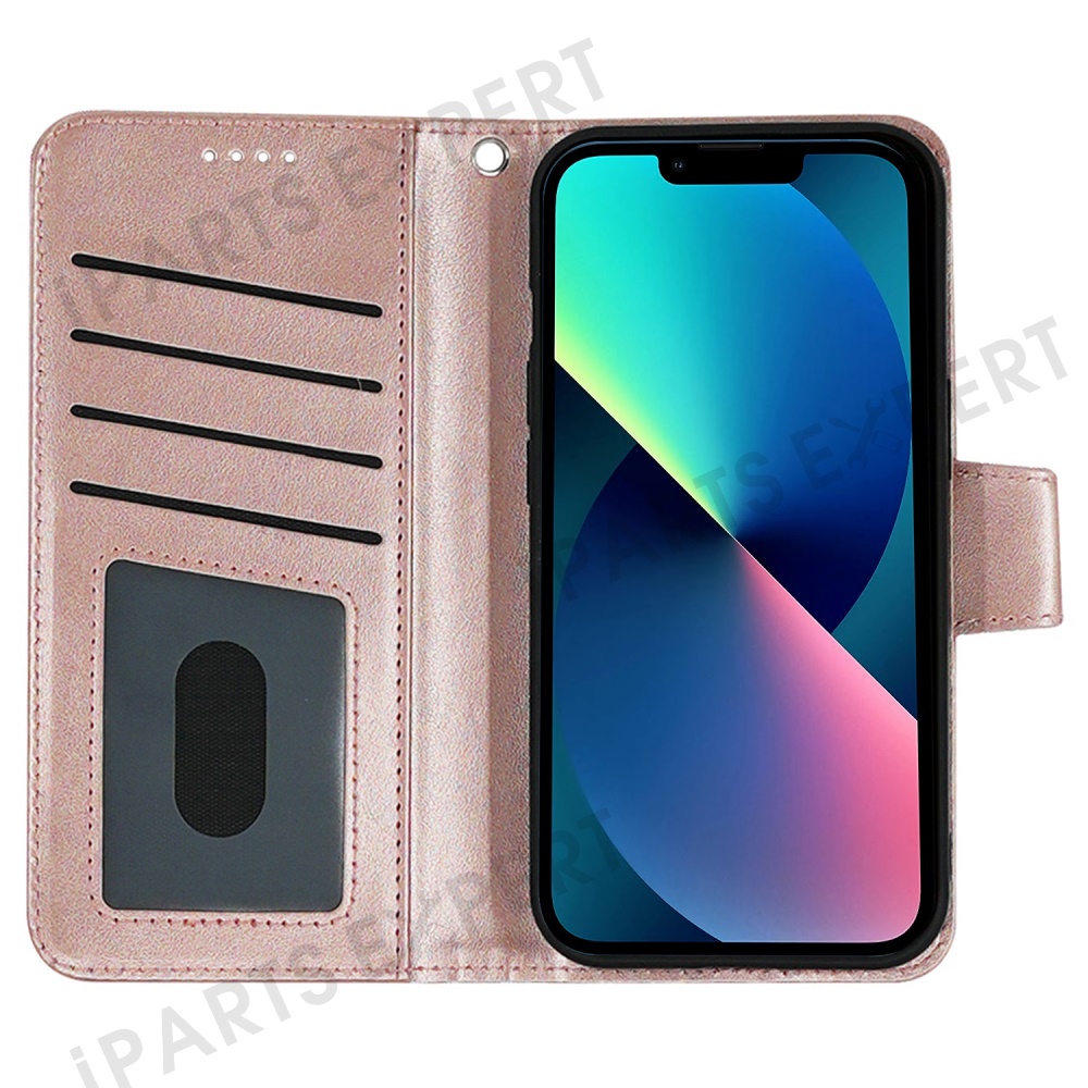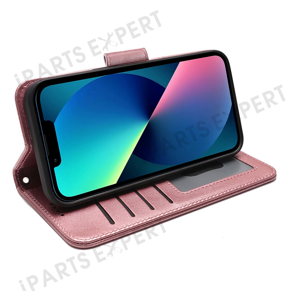 For iPhone 13 Case Stand Card Holder Wallet Leather Phone Cover - Rose Gold
