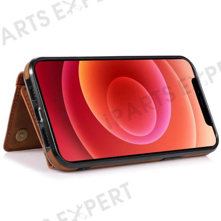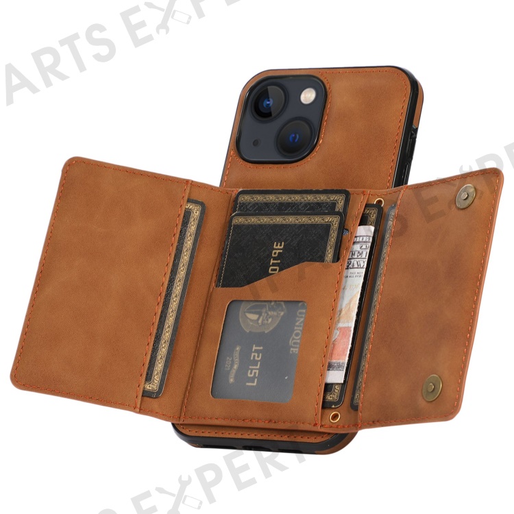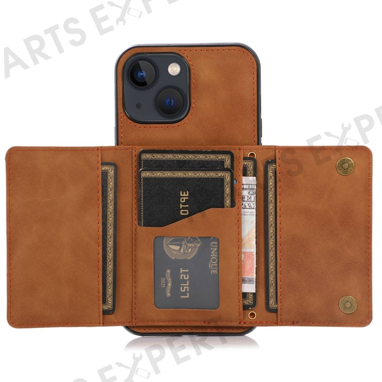 For iPhone 13 mini 5.4 inch Tri-fold Wallet Card Holder Kickstand Phone Cover PU Leather + TPU Anti-drop Case - Brown
