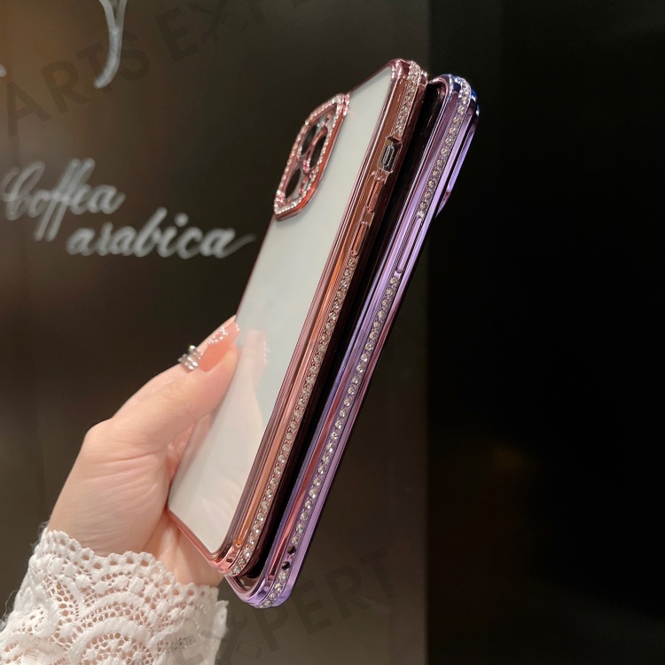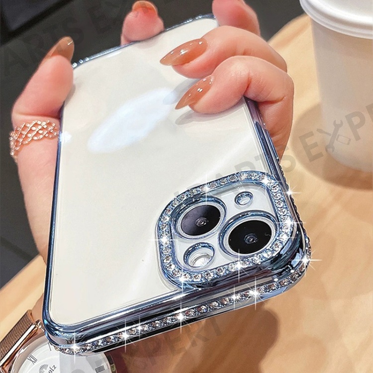 - The phone case frame and camera lens ring are decorated with shiny rhinestones, looking delicate and stylish