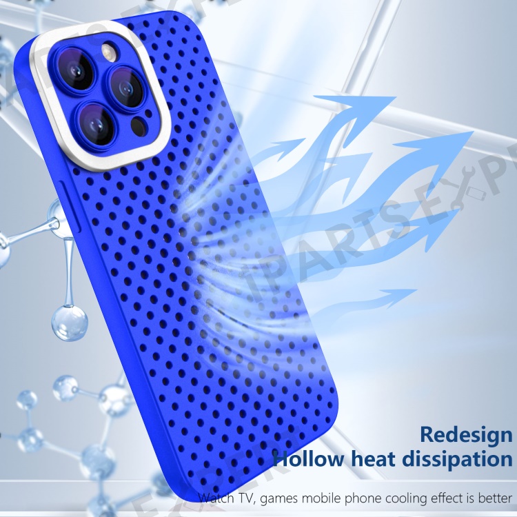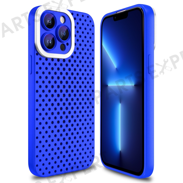 For iPhone 13 Pro 6.1 inch Skin-touch TPU Anti-collision Case Hollow Hole Heat Dissipation Phone Cover - Blue