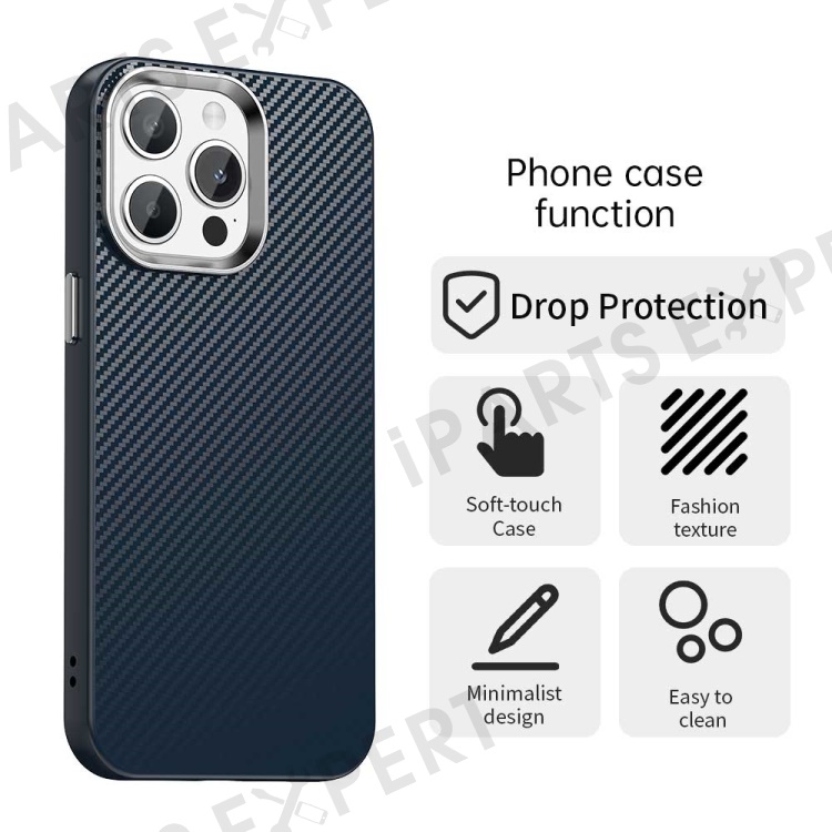 For iPhone 13 Pro Case Cell Phone Hybrid Back Cover Carbon Fiber Texture - Blue