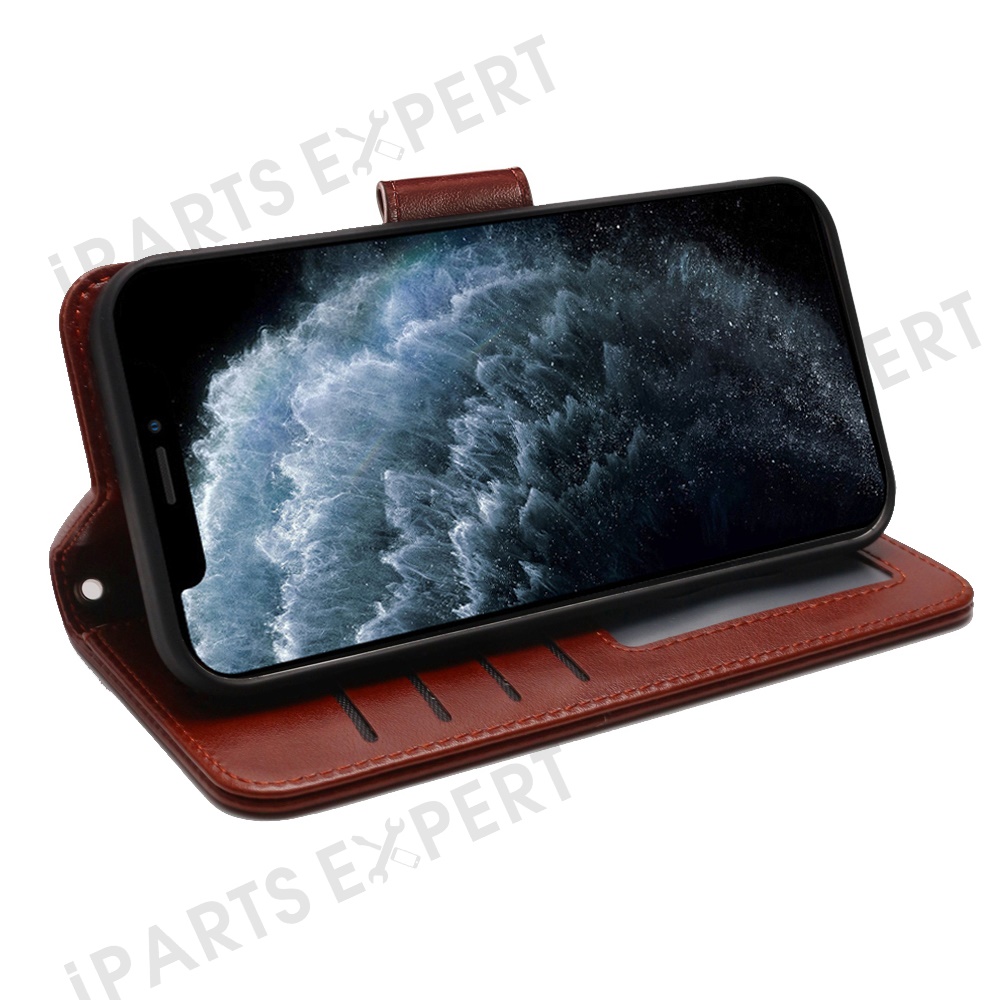 For iPhone 13 Pro Case Stand Card Holder Wallet Leather Phone Cover - Brown