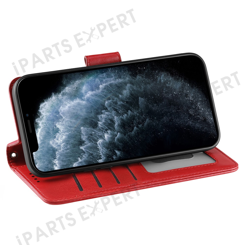 For iPhone 13 Pro Case Stand Card Holder Wallet Leather Phone Cover - Red