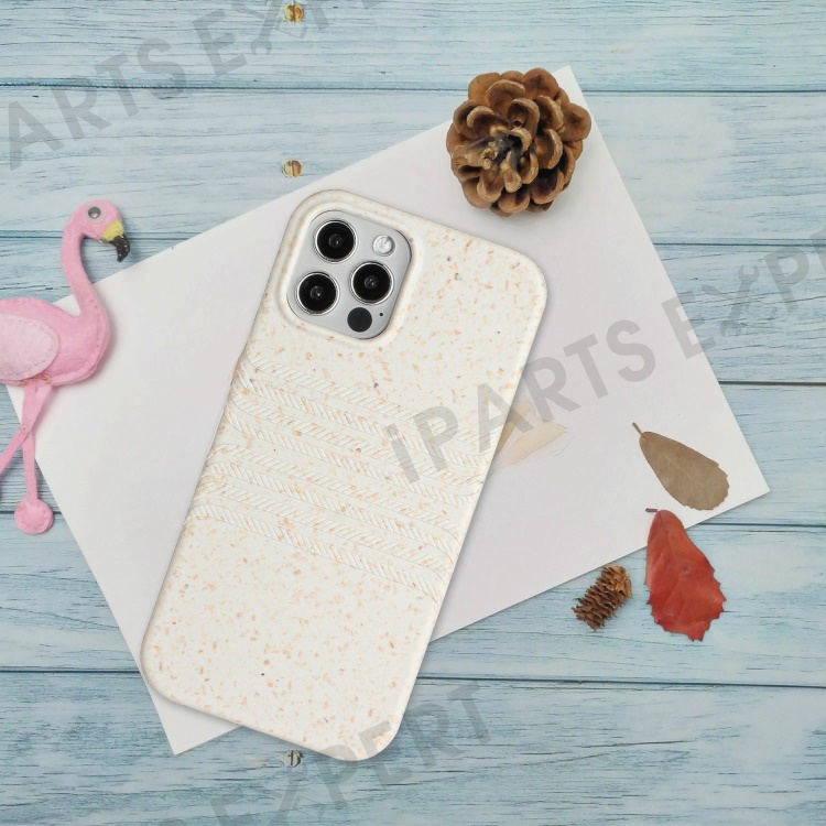 For iPhone 13 Pro Max 6.7 inch Anti-fall Phone Case Fully Biodegradable Wheat Straw + TPU Protective Smartphone Cover - White
