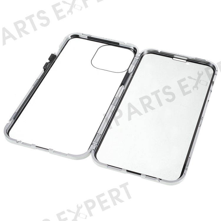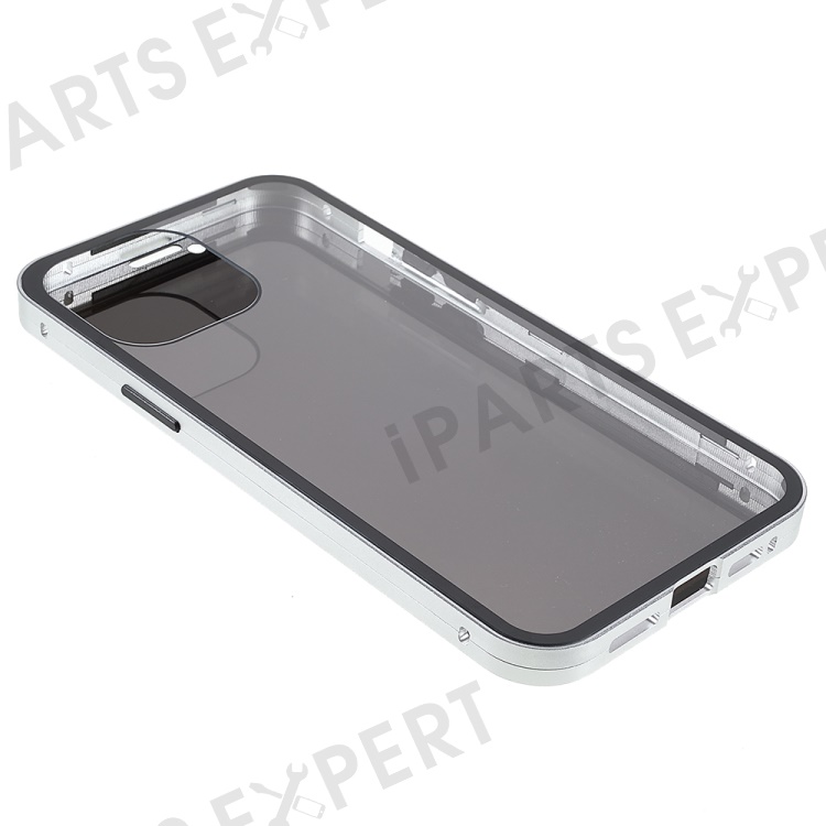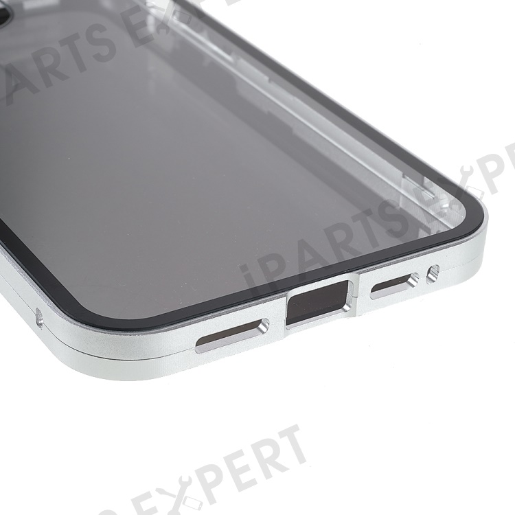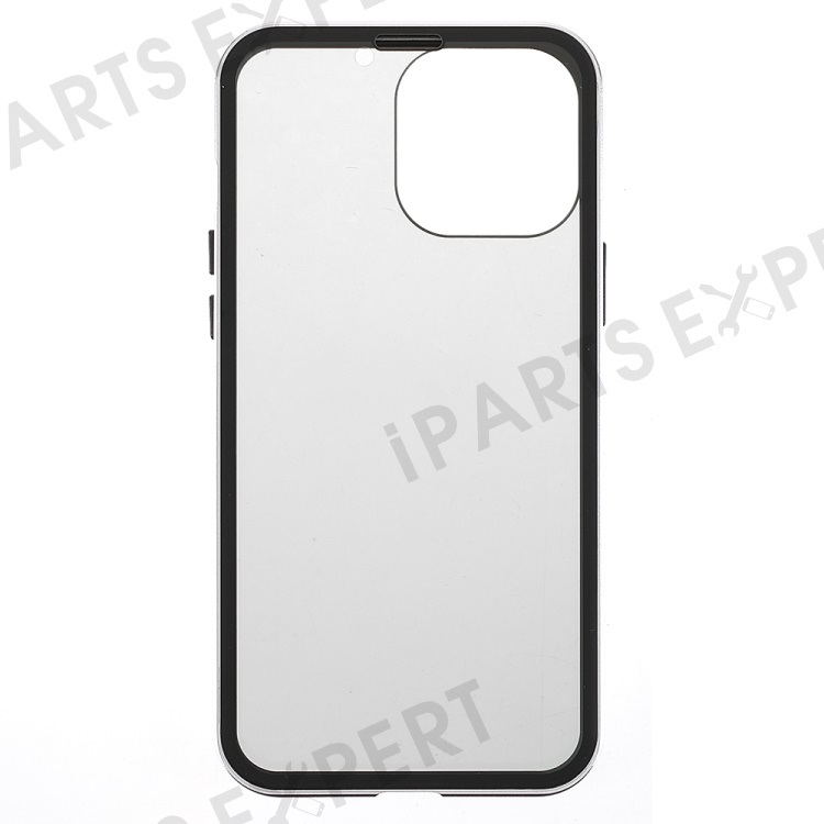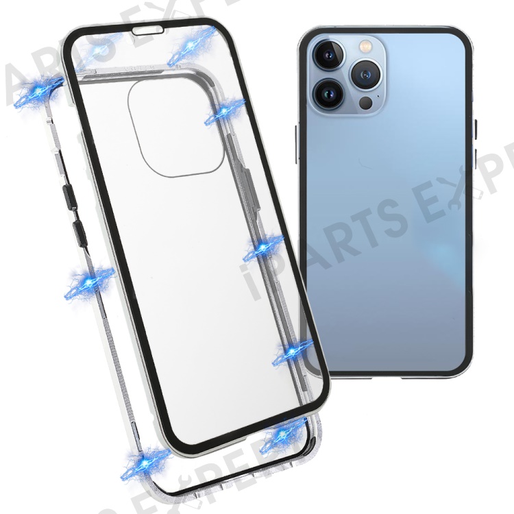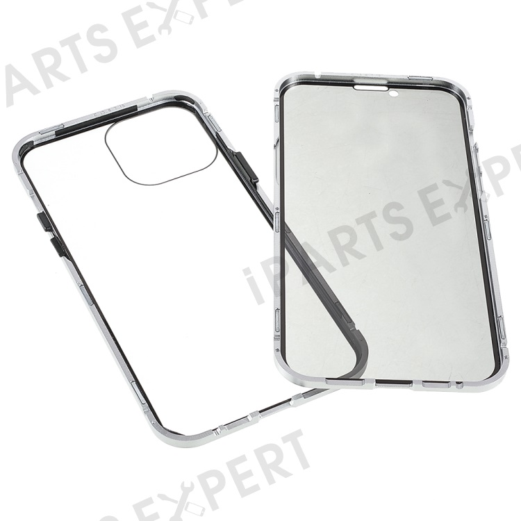 For iPhone 13 Pro Max 6.7 inch Anti-peep Phone Case Metal Frame + Double-sided Tempered Glass Hybrid Cover with Magnetic Closure - Silver