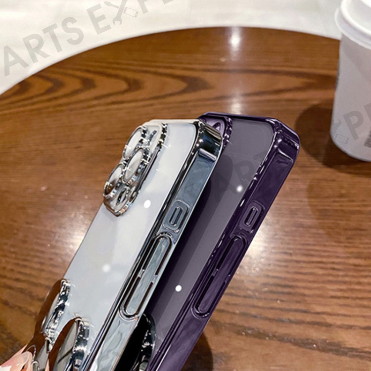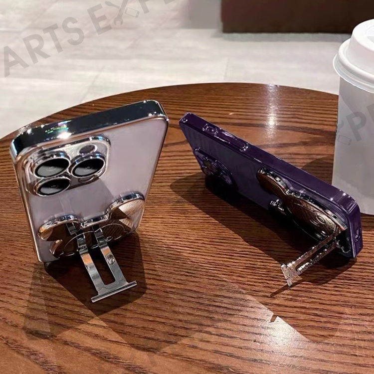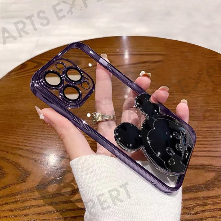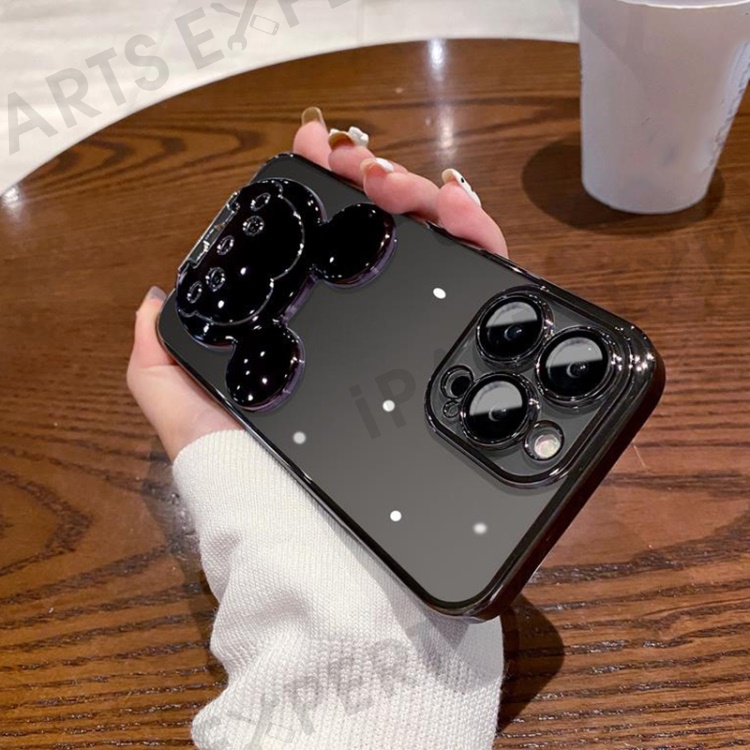 For iPhone 13 Pro Max 6.7 inch Cartoon Mouse Hidden Kickstand Electroplating TPU Back Cover with Lens Film - Black