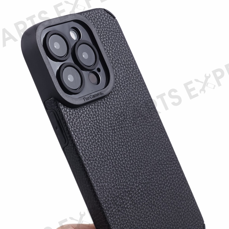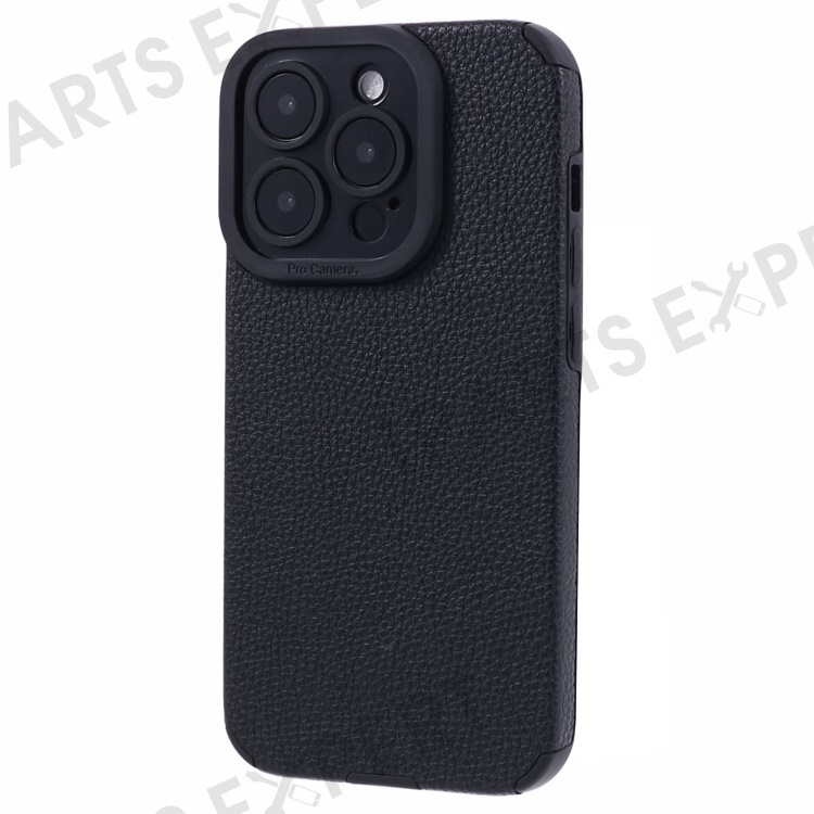 For iPhone 13 Pro Max 6.7 inch Case Textured PU Leather+TPU Anti-fall Phone Cover - Black