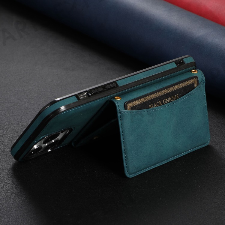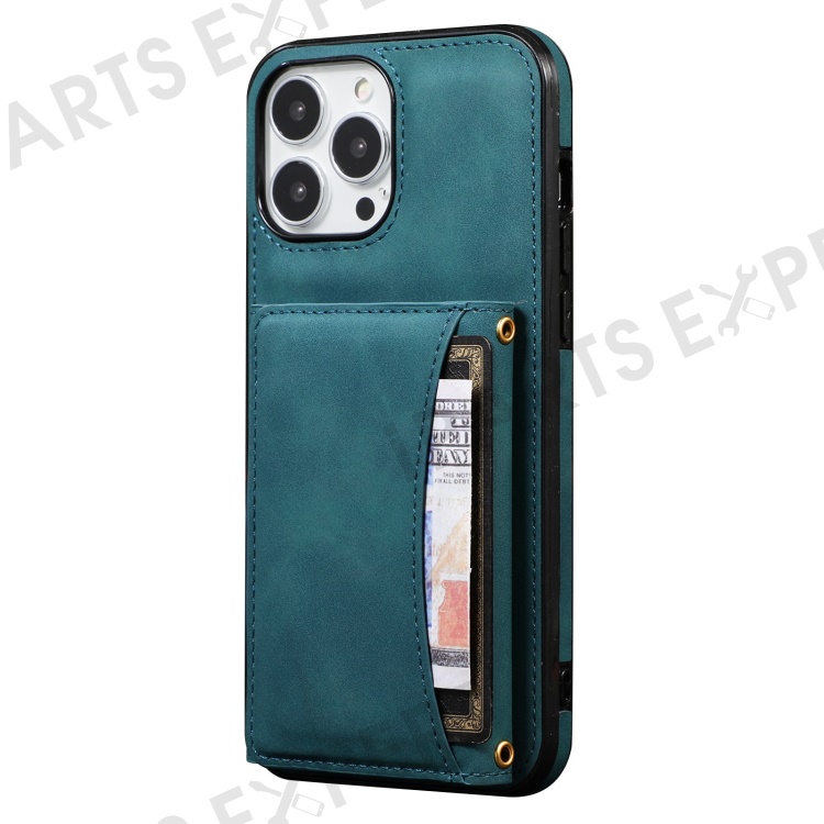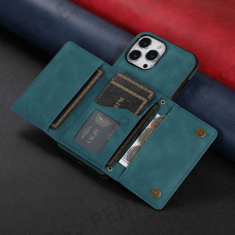 For iPhone 13 Pro Max 6.7 inch Cell Phone Case Scratch-resistant Wallet Design Leather Coated TPU Cover - Blue