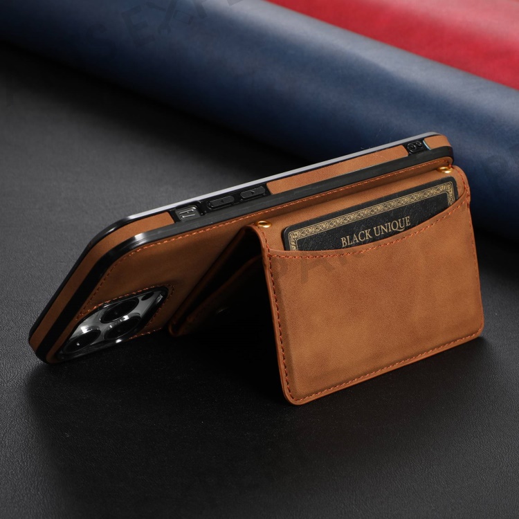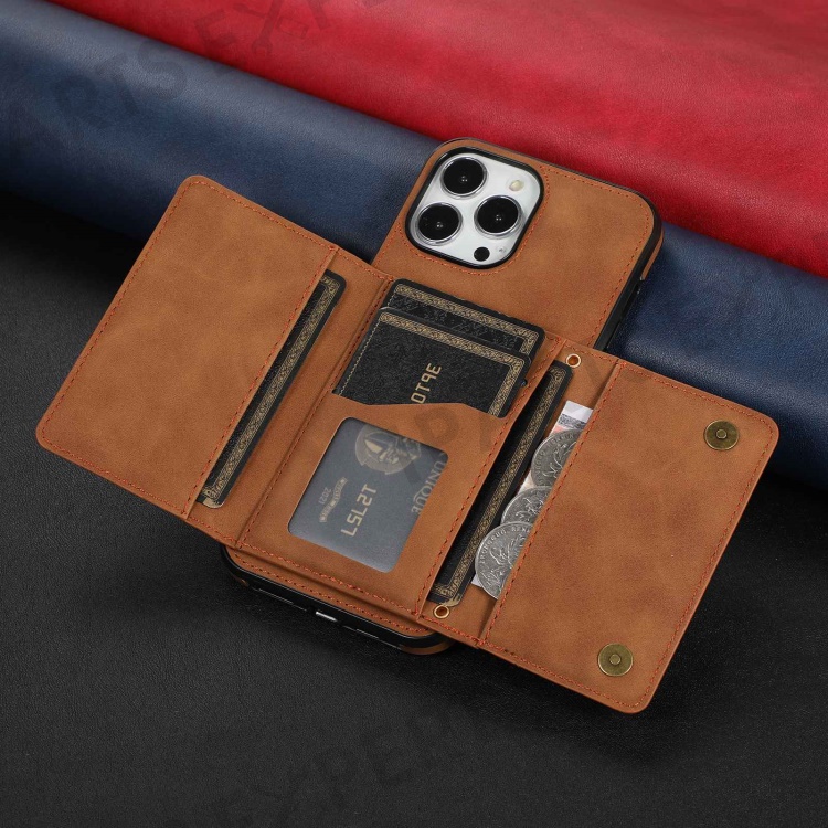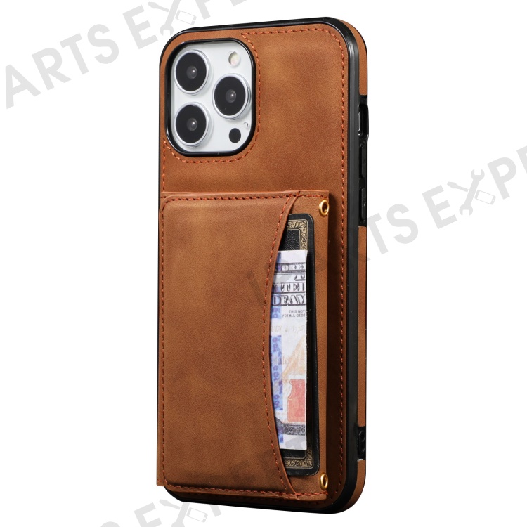 For iPhone 13 Pro Max 6.7 inch Cell Phone Case Scratch-resistant Wallet Design Leather Coated TPU Cover - Brown