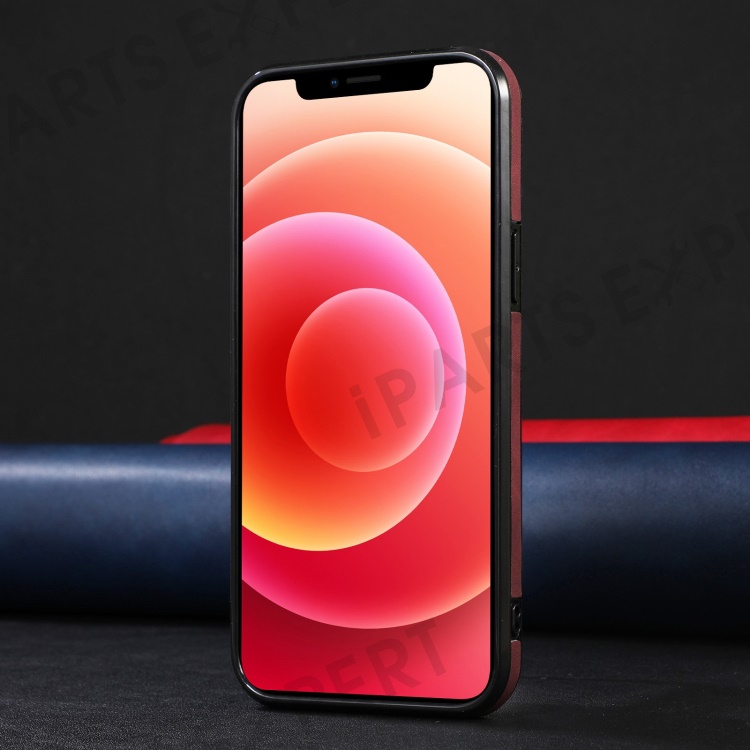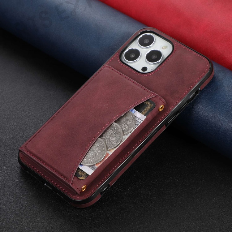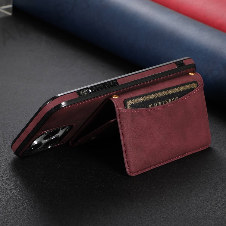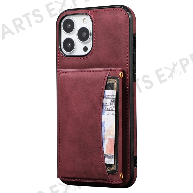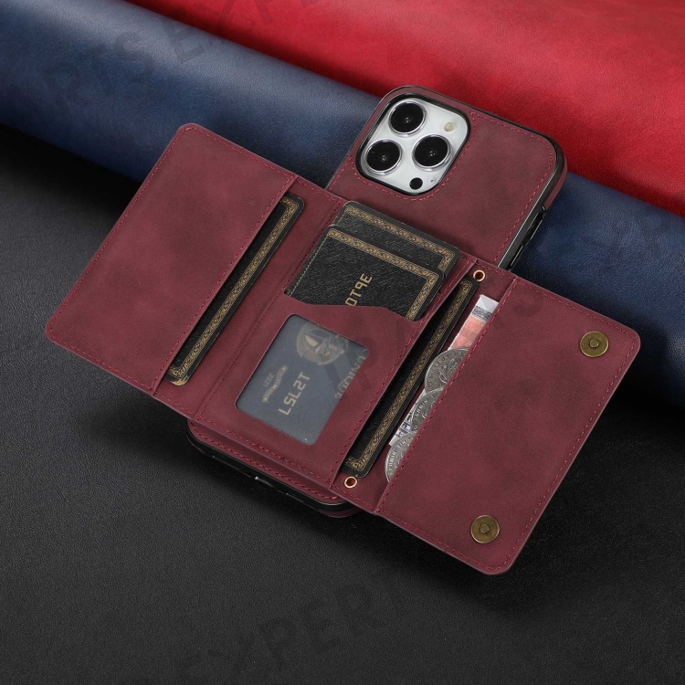For iPhone 13 Pro Max 6.7 inch Cell Phone Case Scratch-resistant Wallet Design Leather Coated TPU Cover - Wine Red