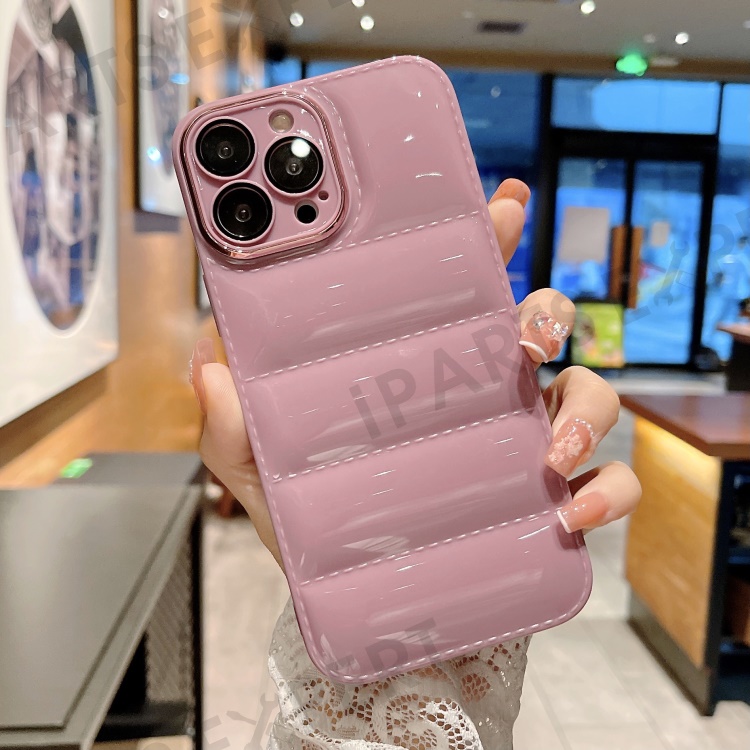 For iPhone 13 Pro Max 6.7 inch Down Jacket Design Shockproof Phone Case TPU Cover with Lens Protector - Purple