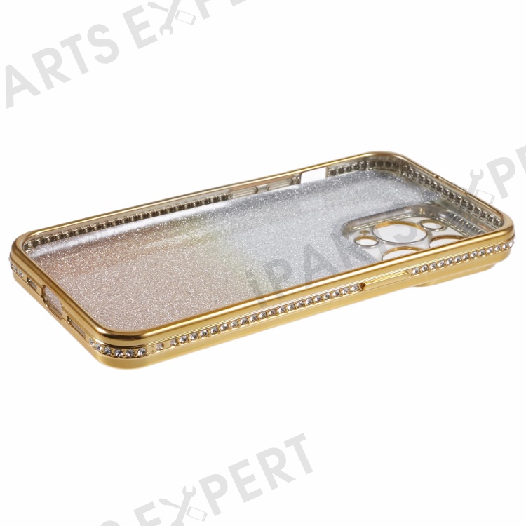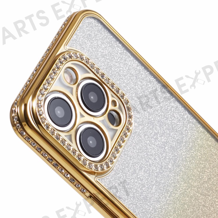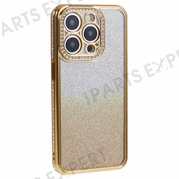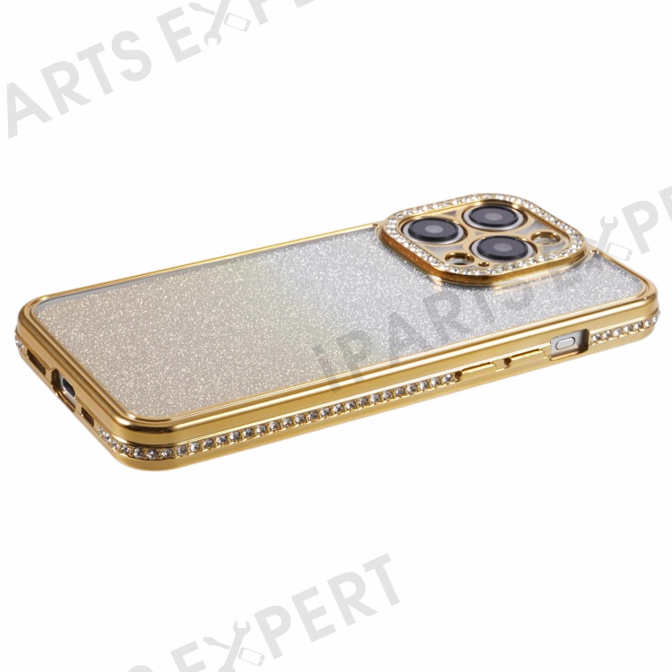 For iPhone 13 Pro Max 6.7 inch TPU Case Rhinestones Decorated Gradient Back Phone Cover - Gold