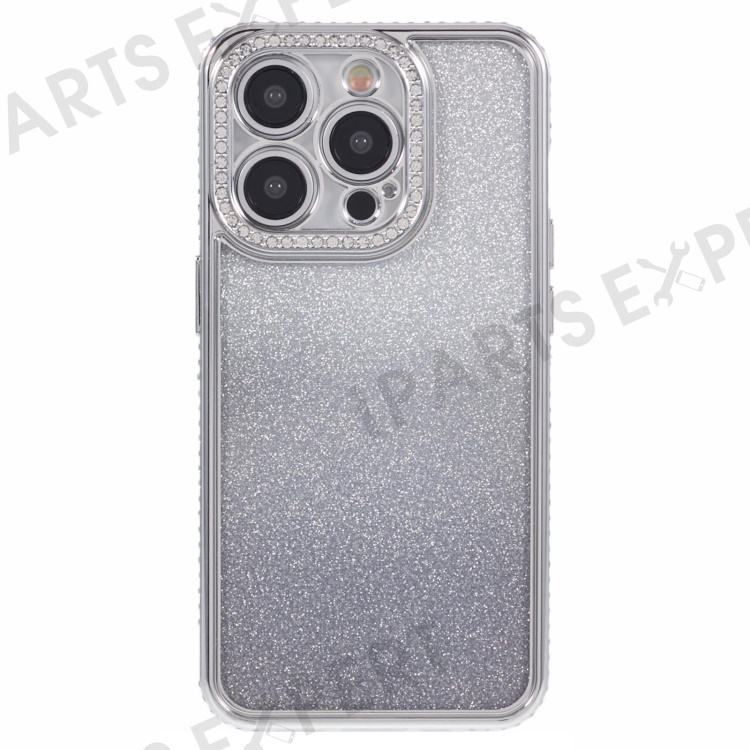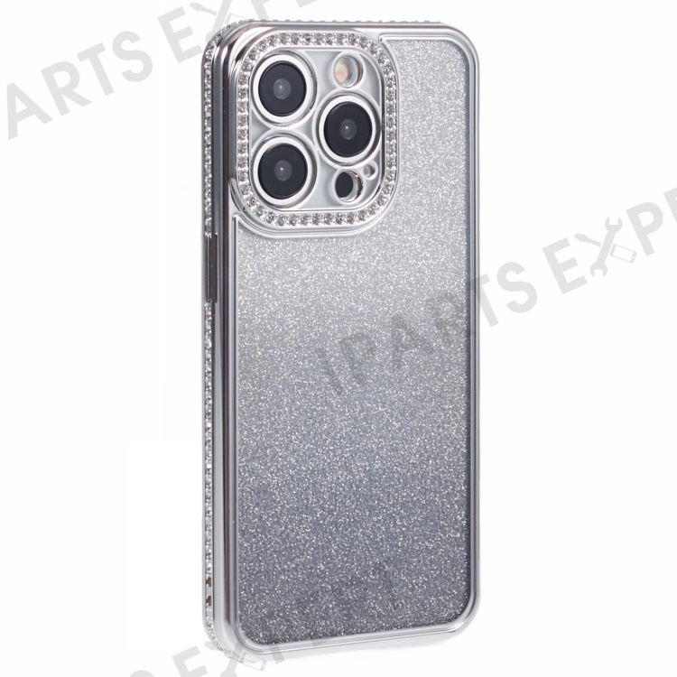 For iPhone 13 Pro Max 6.7 inch TPU Case Rhinestones Decorated Gradient Back Phone Cover - Silver