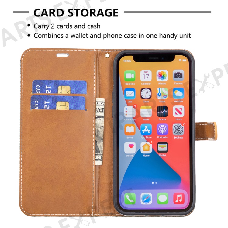 - 1 x Color Splicing Jeans Cloth Skin Wallet Leather Phone Cover