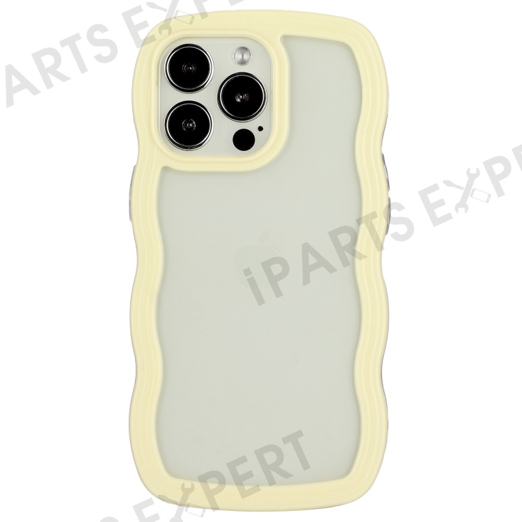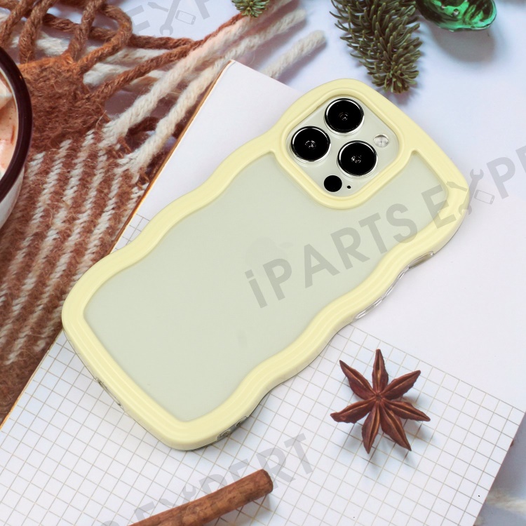 For iPhone 13 Pro Max 6.7 inch Wavy Edge Color Frame Transparent Back Cover Drop Proof PC + TPU Phone Case - Beige