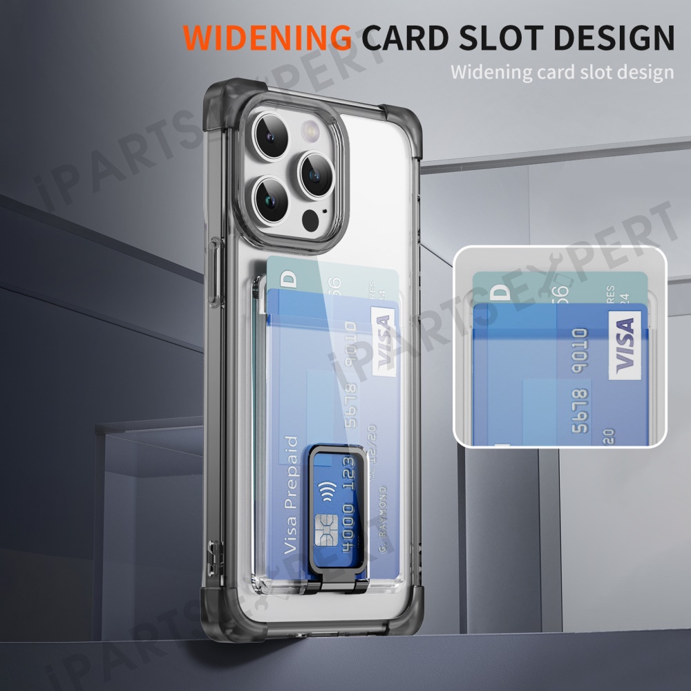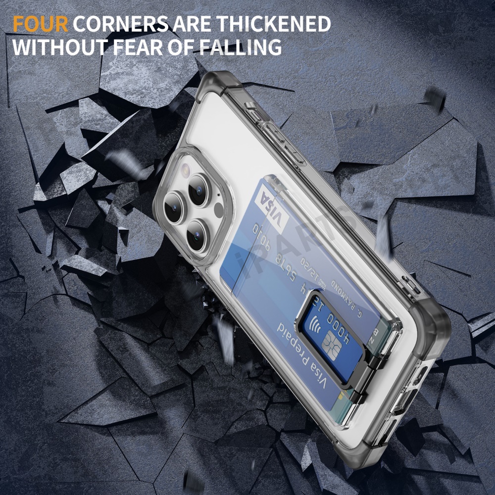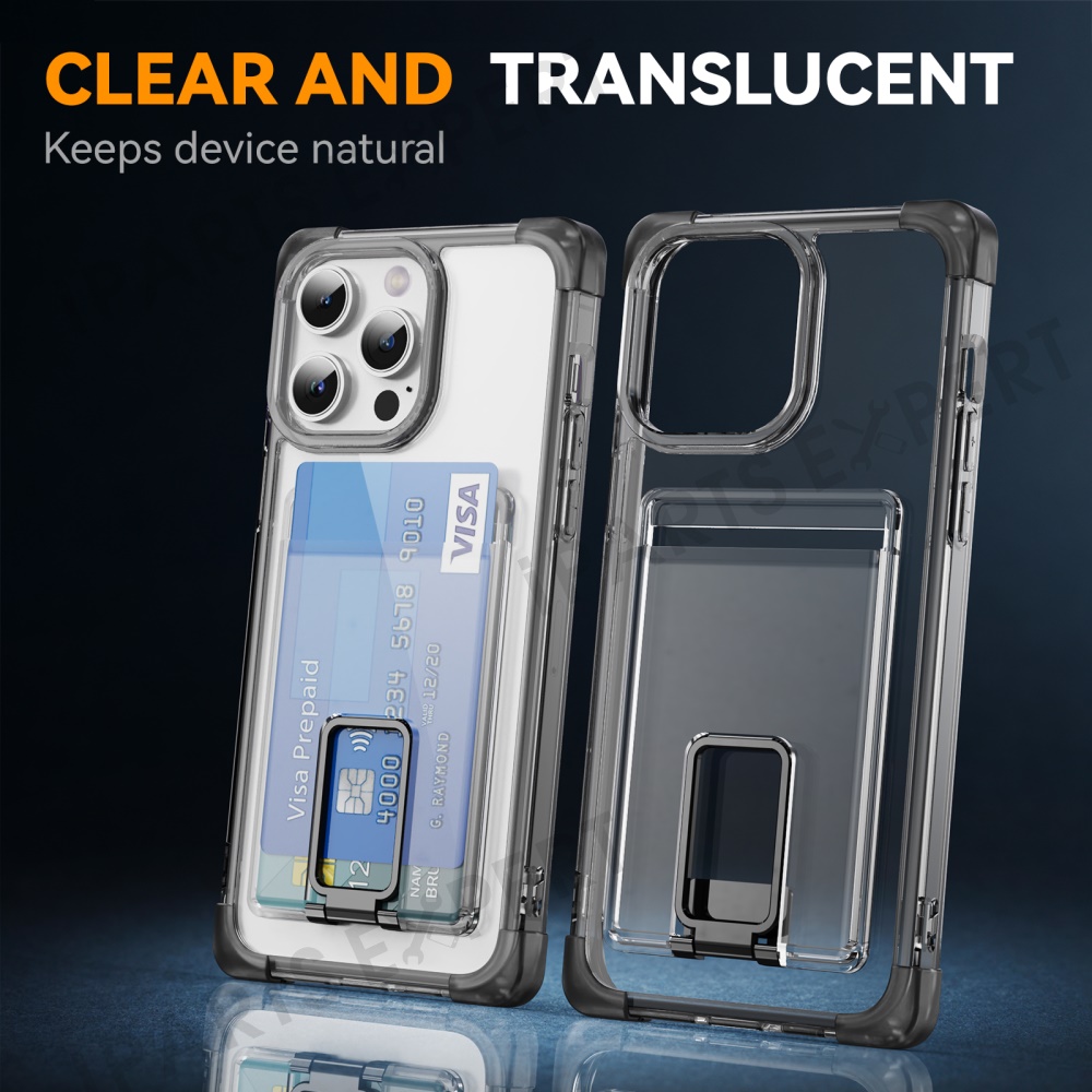 For iPhone 13 Pro Max Case Reinforced Corners TPU + Acrylic Phone Cover with Kickstand Card Holder - Transparent Black