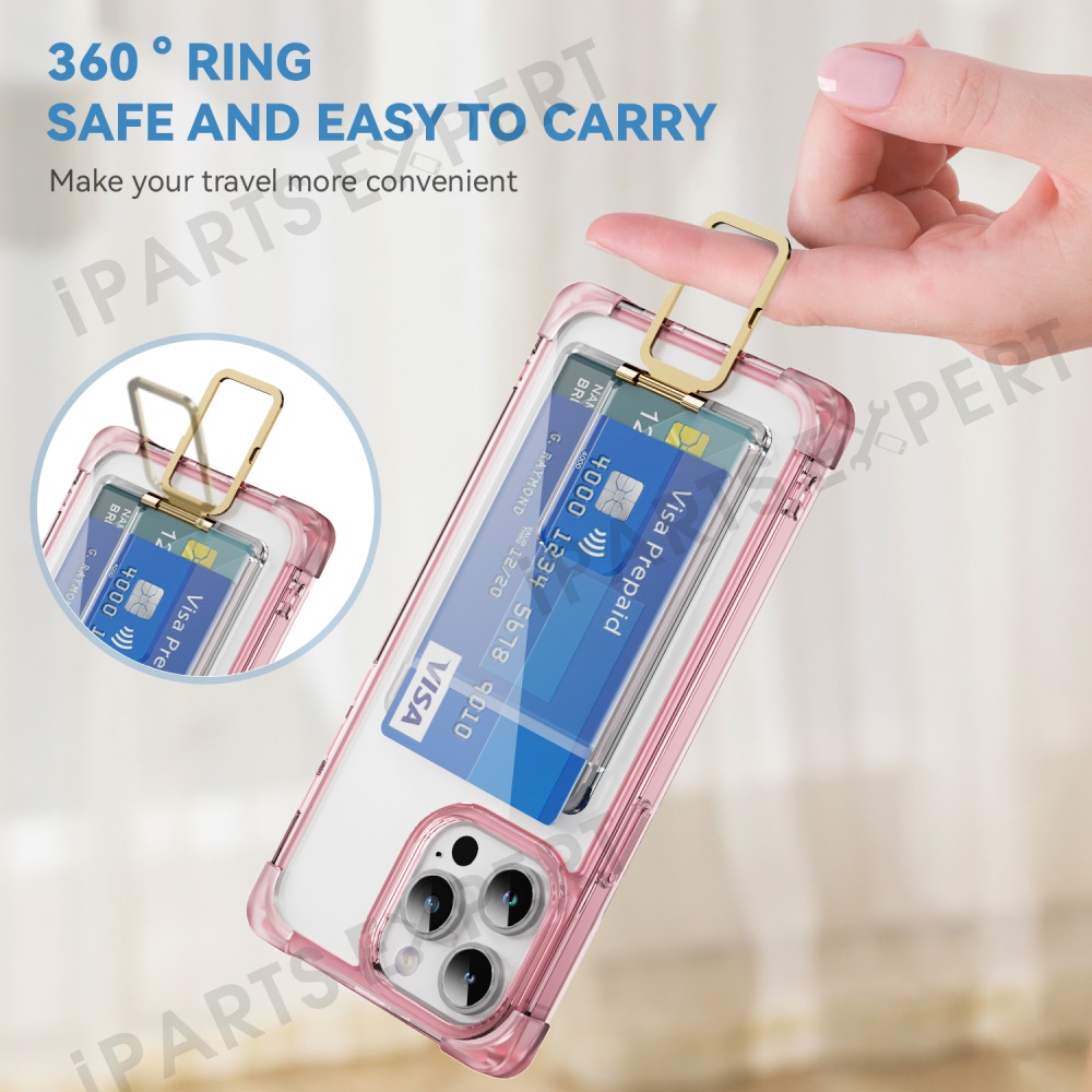For iPhone 13 Pro Max Case Reinforced Corners TPU + Acrylic Phone Cover with Kickstand Card Holder - Transparent Pink