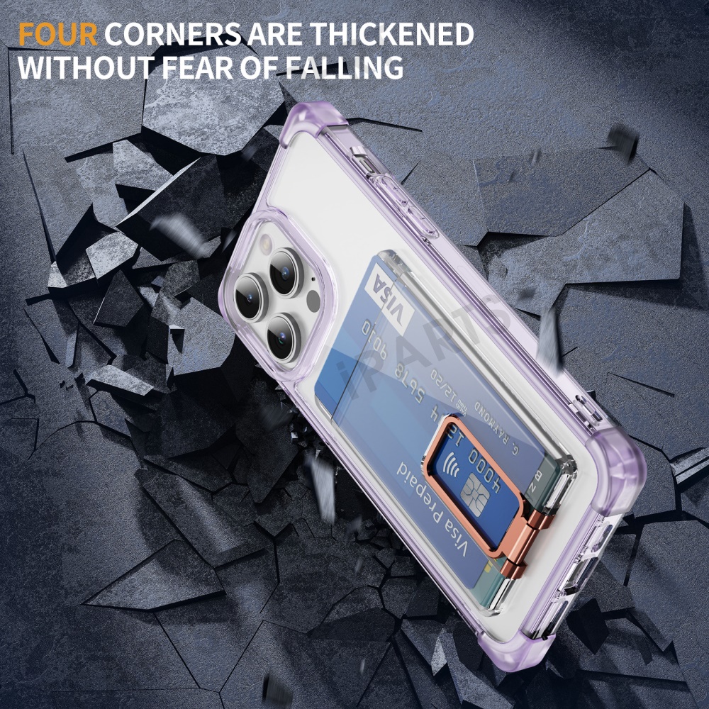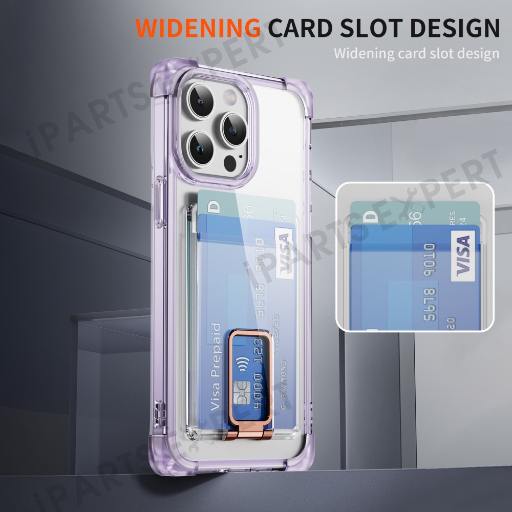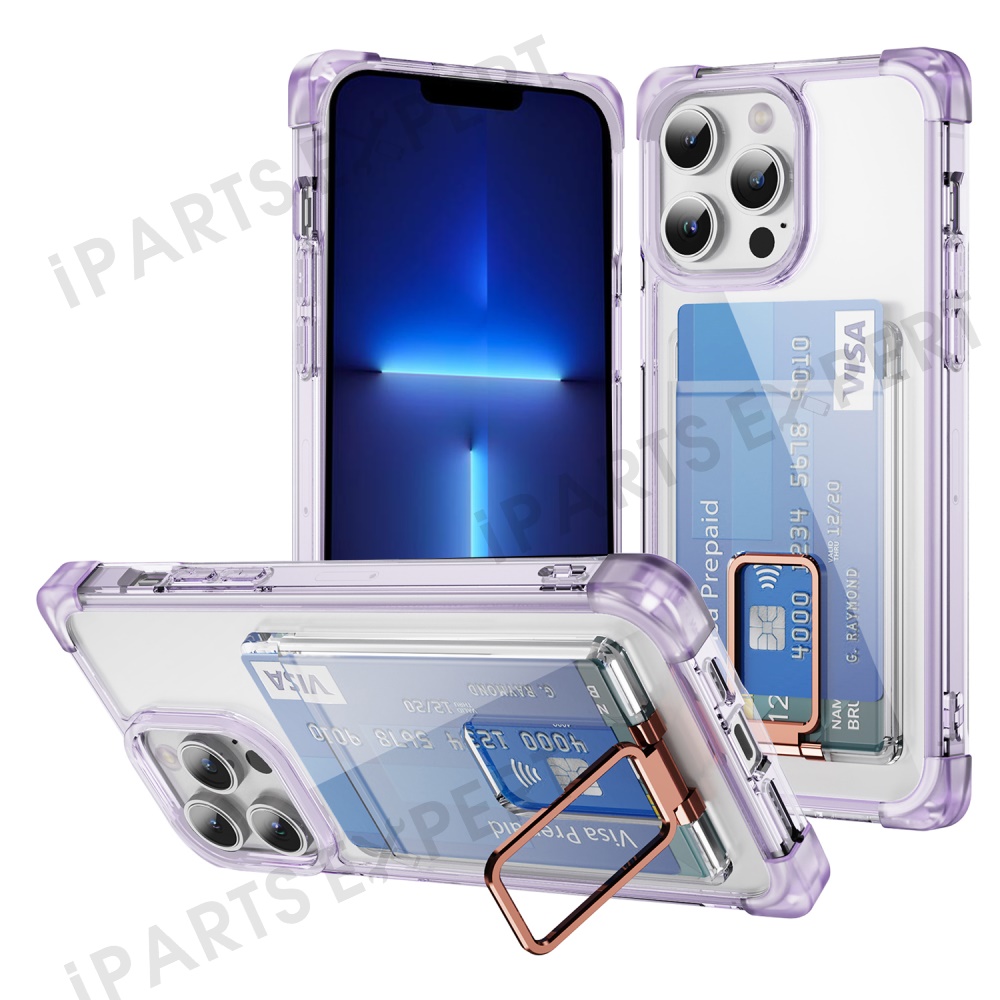 For iPhone 13 Pro Max Case Reinforced Corners TPU + Acrylic Phone Cover with Kickstand Card Holder - Transparent Purple