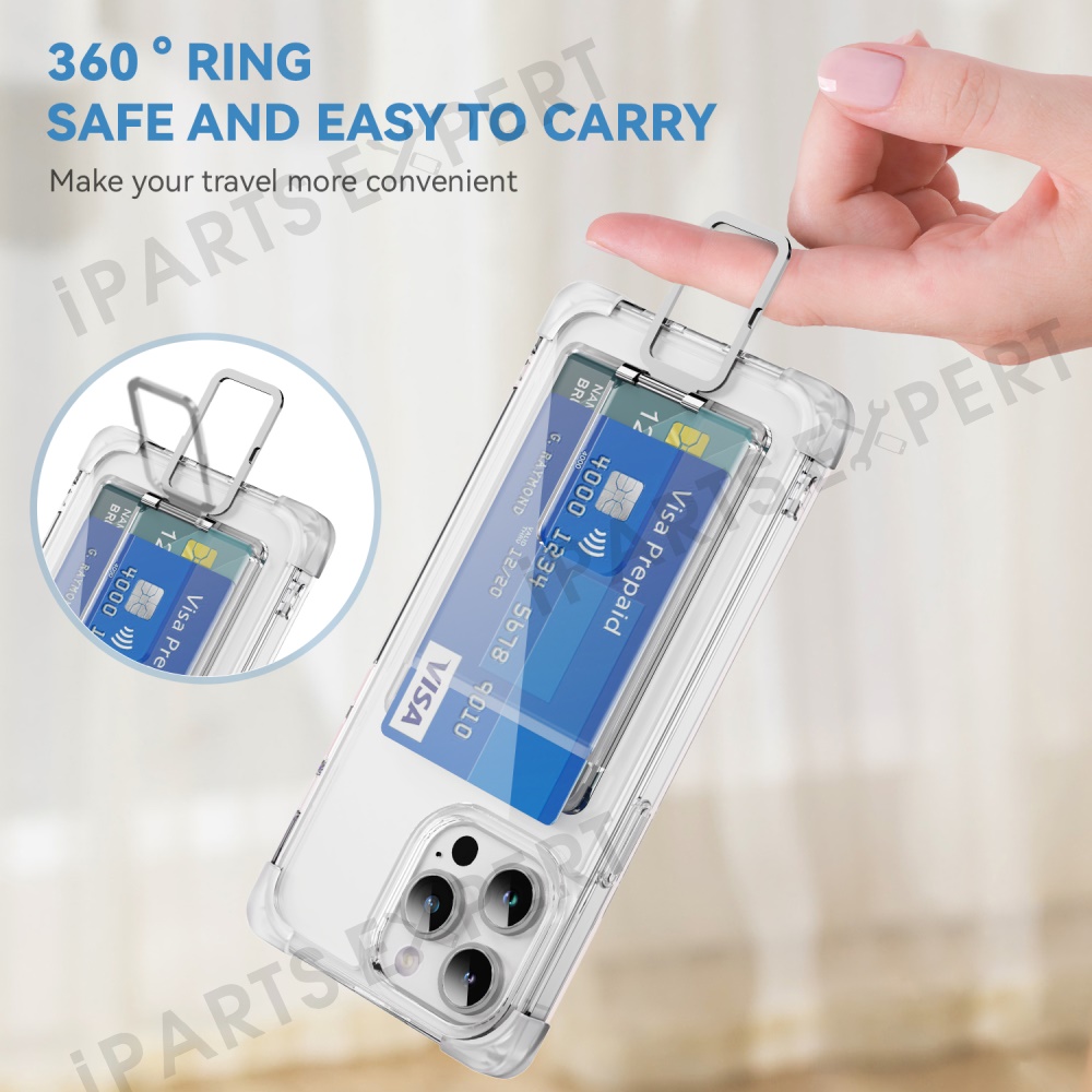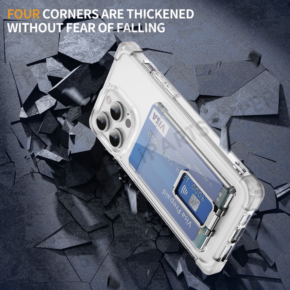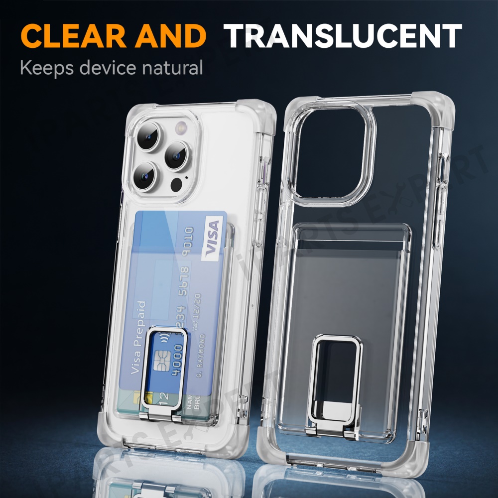 For iPhone 13 Pro Max Case Reinforced Corners TPU + Acrylic Phone Cover with Kickstand Card Holder - Transparent