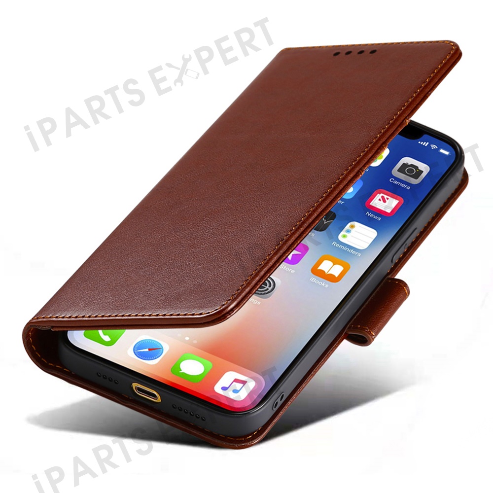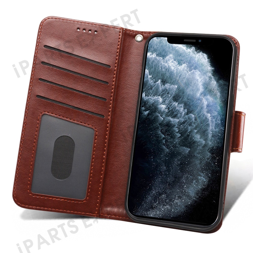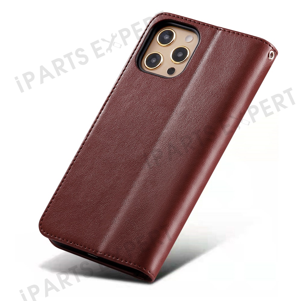 For iPhone 13 Pro Max Case Stand Card Holder Wallet Leather Phone Cover - Brown