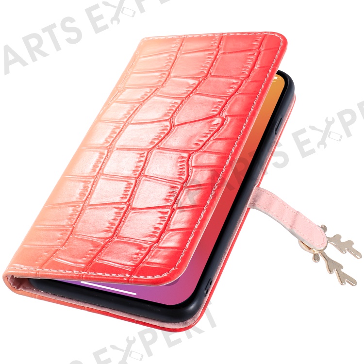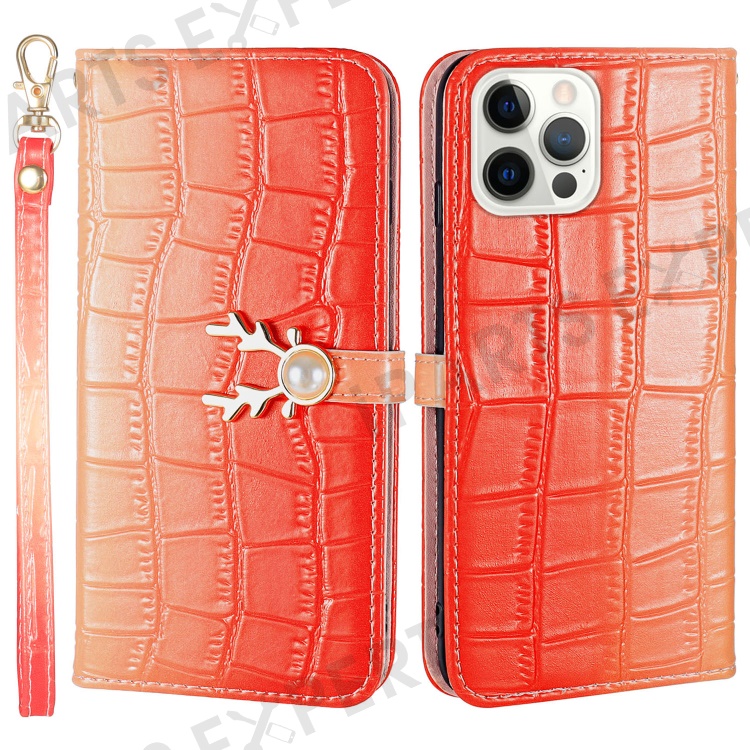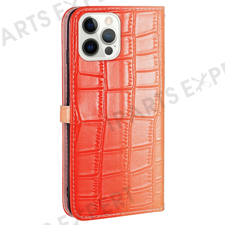 For iPhone 13 Pro Max Leather Case Gradient Crocodile Texture Phone Case - Red