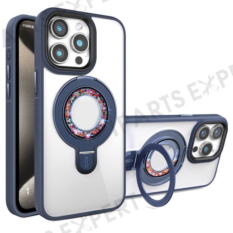 For iPhone 13 Pro Max Magnetic Case PC+TPU Phone Cover with Rhinestone Ring Kickstand - Sapphire