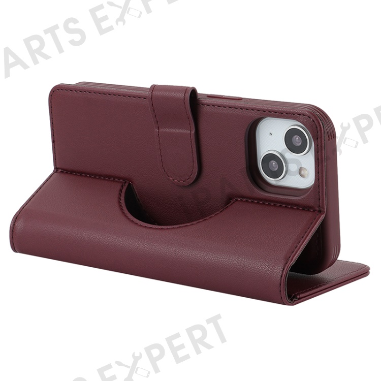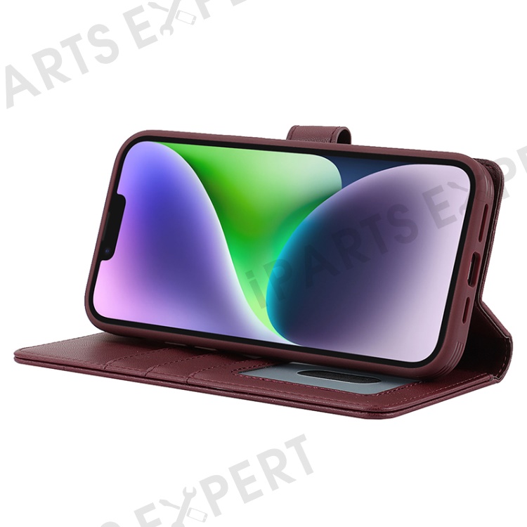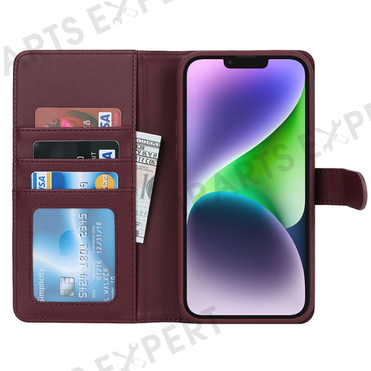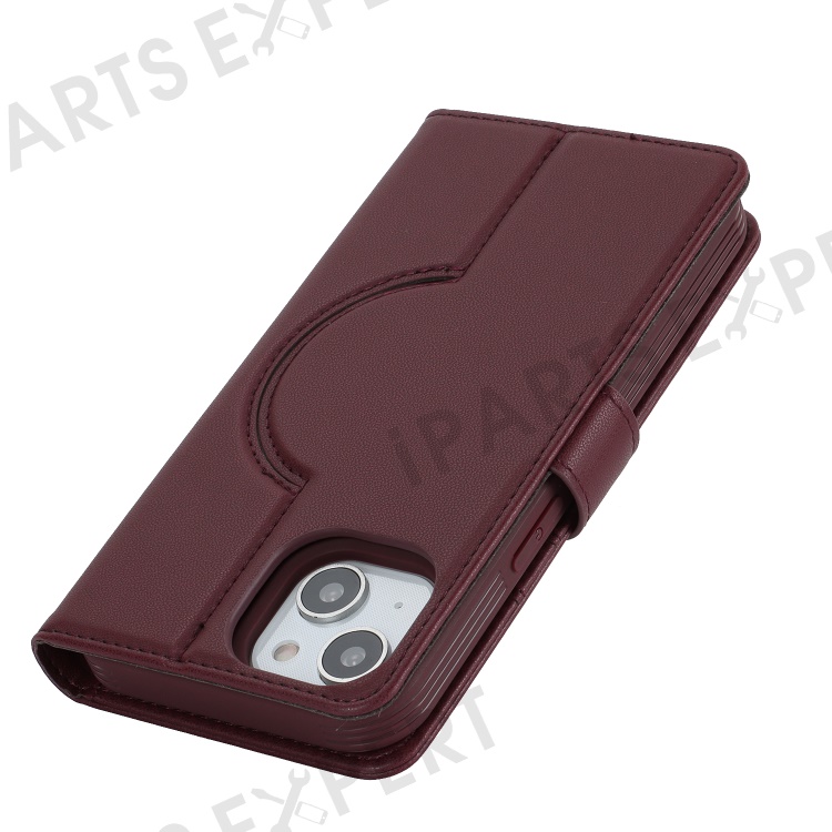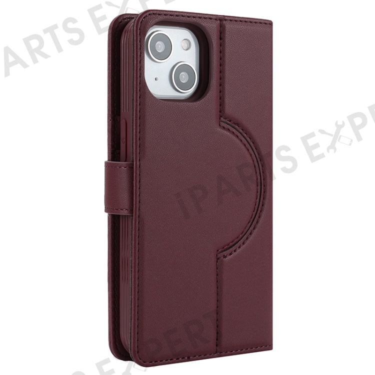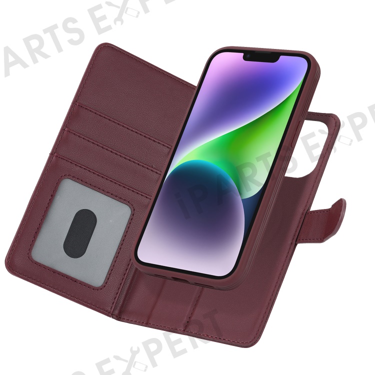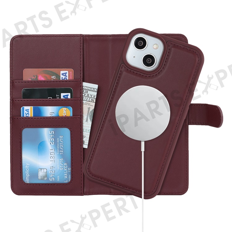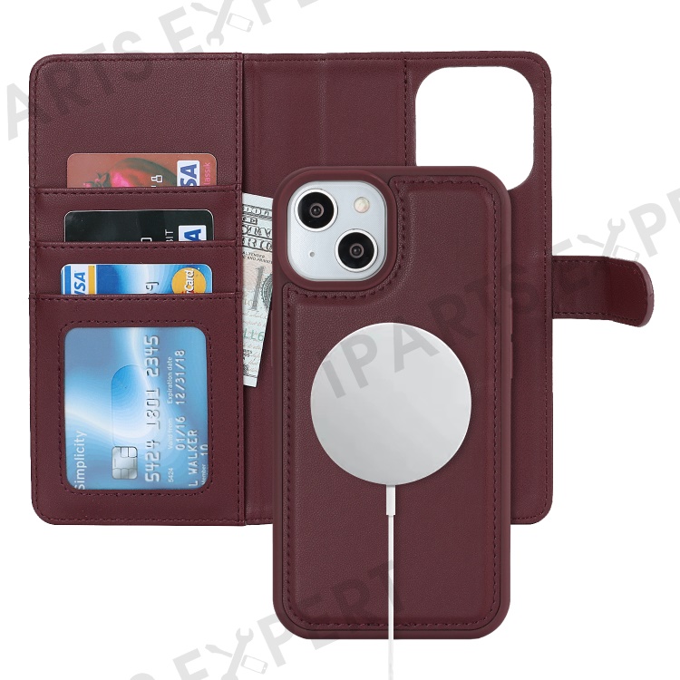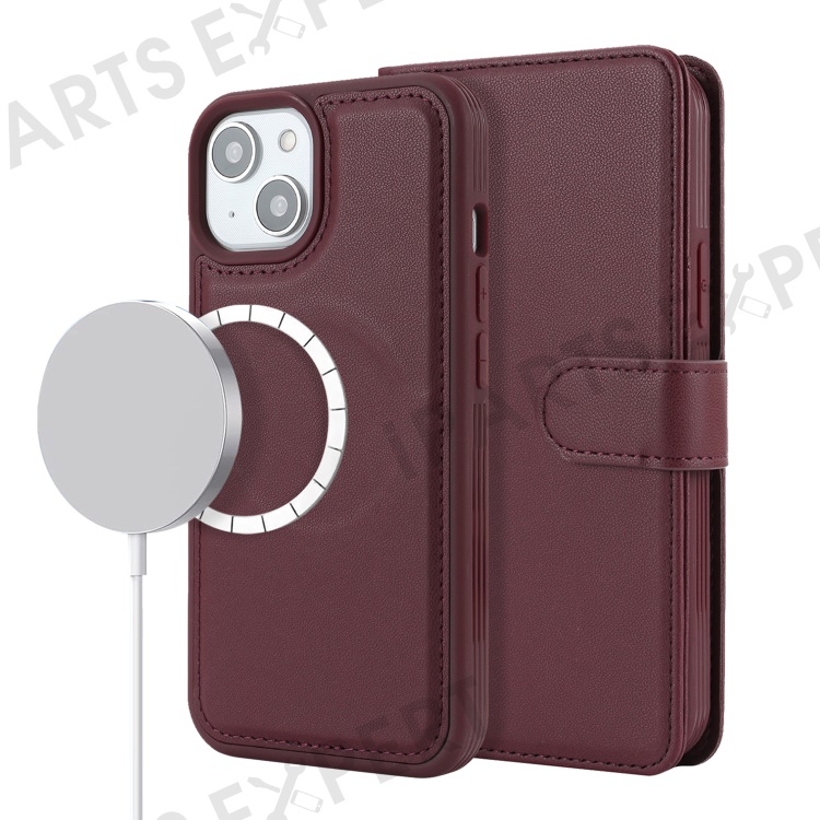 For iPhone 14 / 13 6.1 inch Case Anti-Drop Detachable PU Phone Cover Compatible with MagSafe - Wine Red