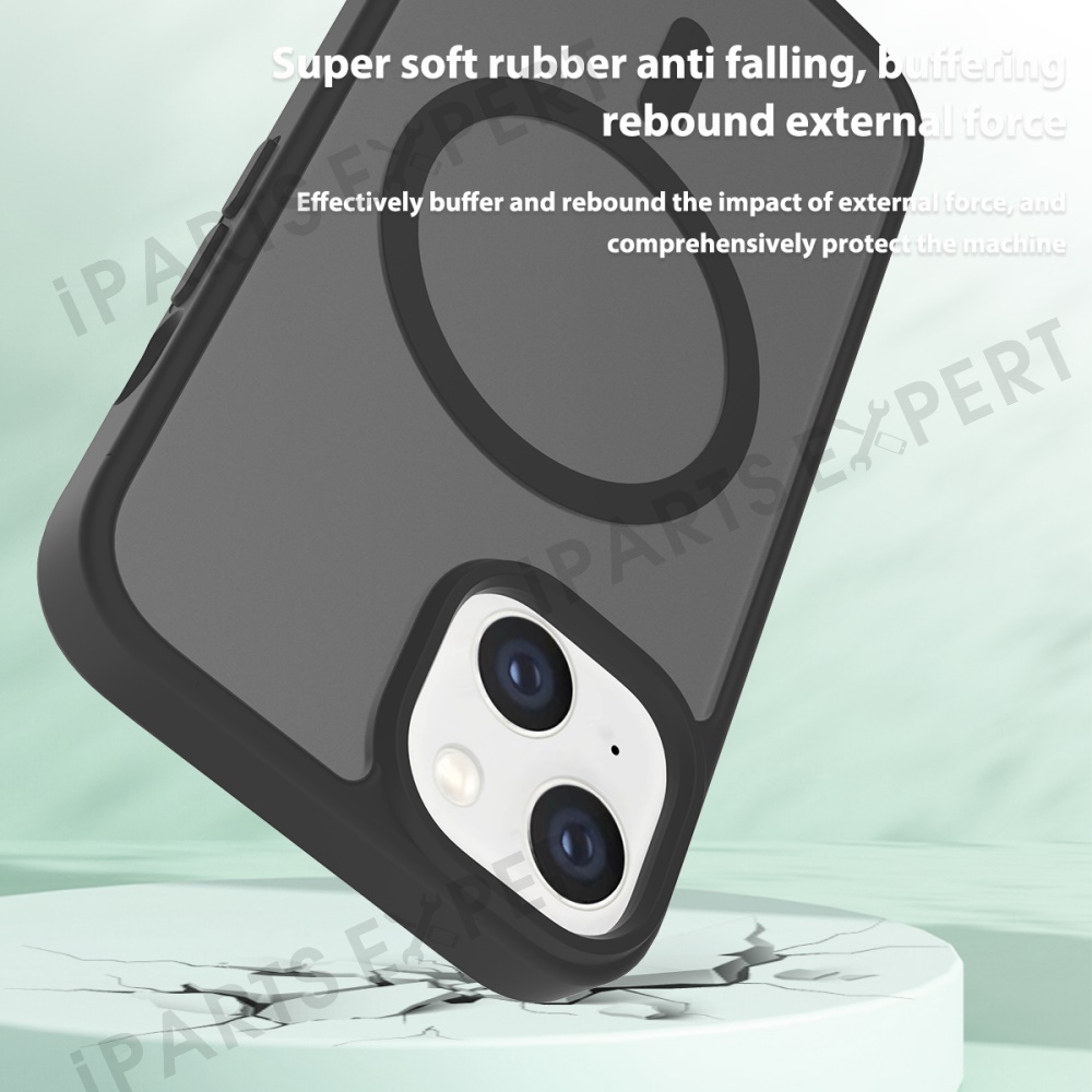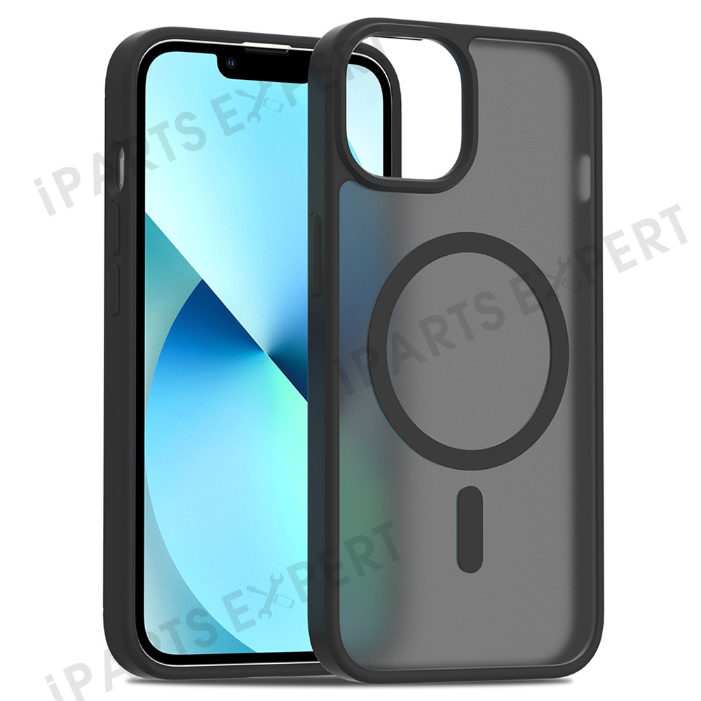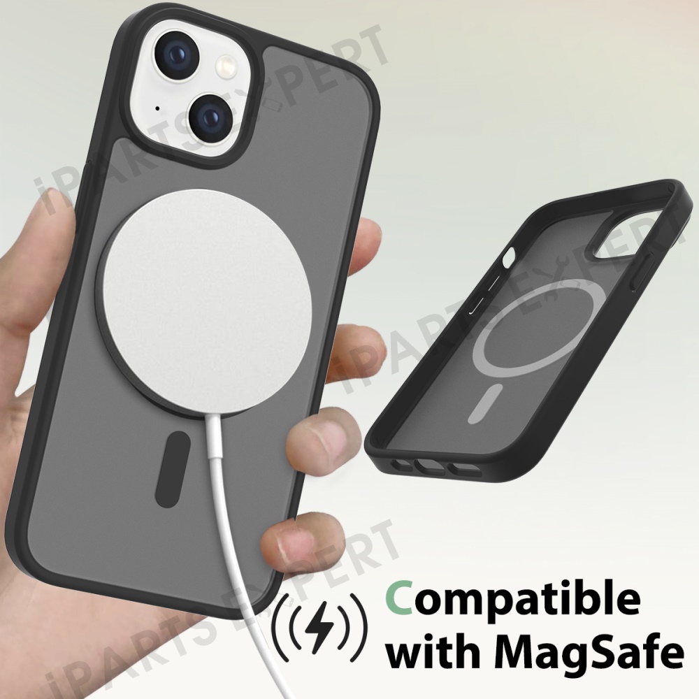 For iPhone 14 / 13 Case Compatible with MagSafe TPU Frame Acrylic Back Phone Cover Skin Touch - Black