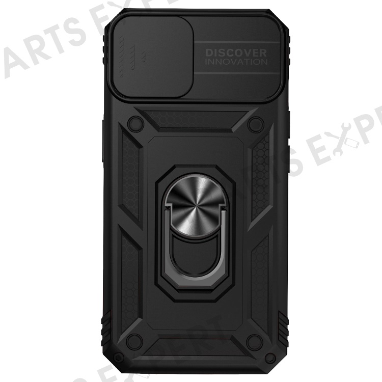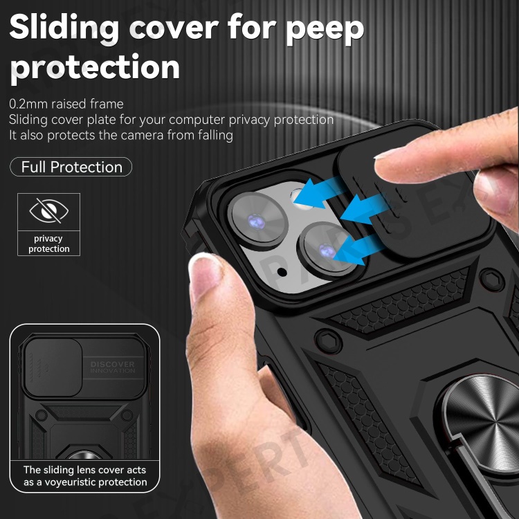 For iPhone 14 6.1 inch 360-degree Rotary Kickstand Case Hard PC + TPU All-inclusive Protection Phone Cover with Slide Camera Protection Cover - Black