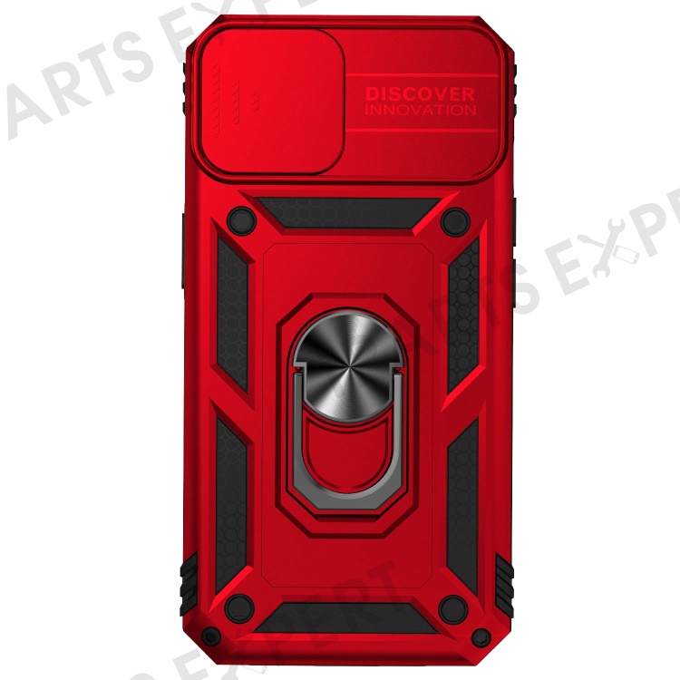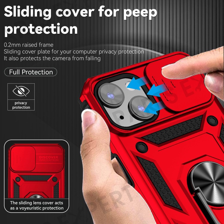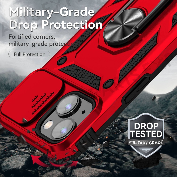 For iPhone 14 6.1 inch 360-degree Rotary Kickstand Case Hard PC + TPU All-inclusive Protection Phone Cover with Slide Camera Protection Cover - Red