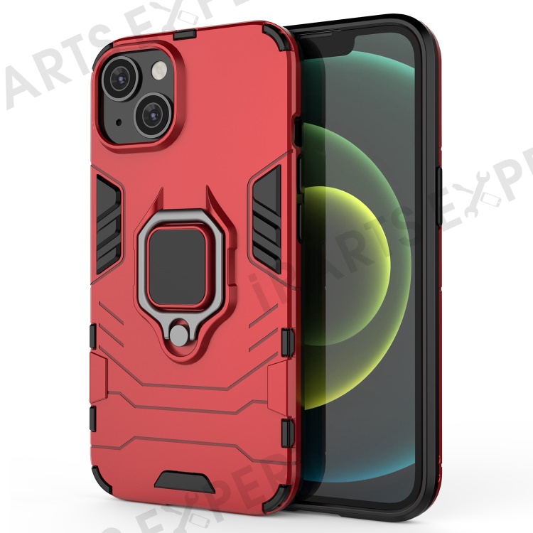 For iPhone 14 6.1 inch Anti-fall Phone Case Ring Kickstand Sturdy Shockproof Flexible TPU + Hard PC Back Cover - Red