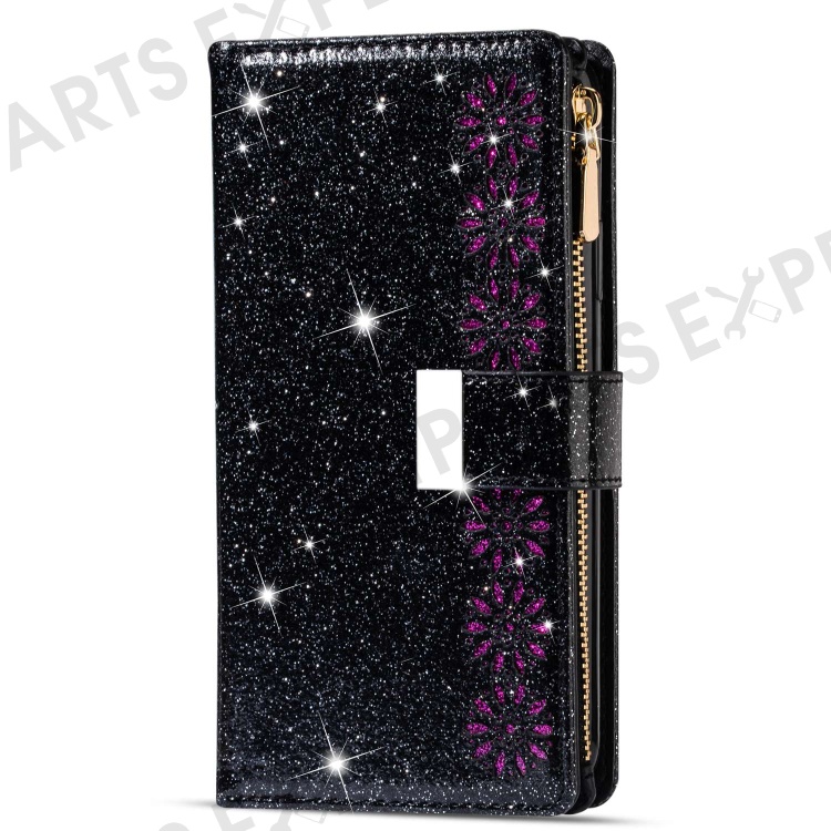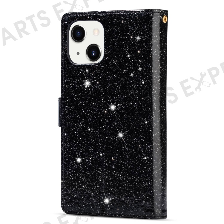 For iPhone 14 6.1 inch Anti-scratch Flip Leather Case, Laser Carving Glittery Starry Style Zipper Wallet Stand with Strap - Black