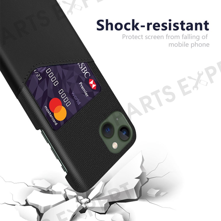 For iPhone 14 6.1 inch Cloth Texture Phone Protector PU Leather Coated Hard PC Cover Shell with Card Slot - Black