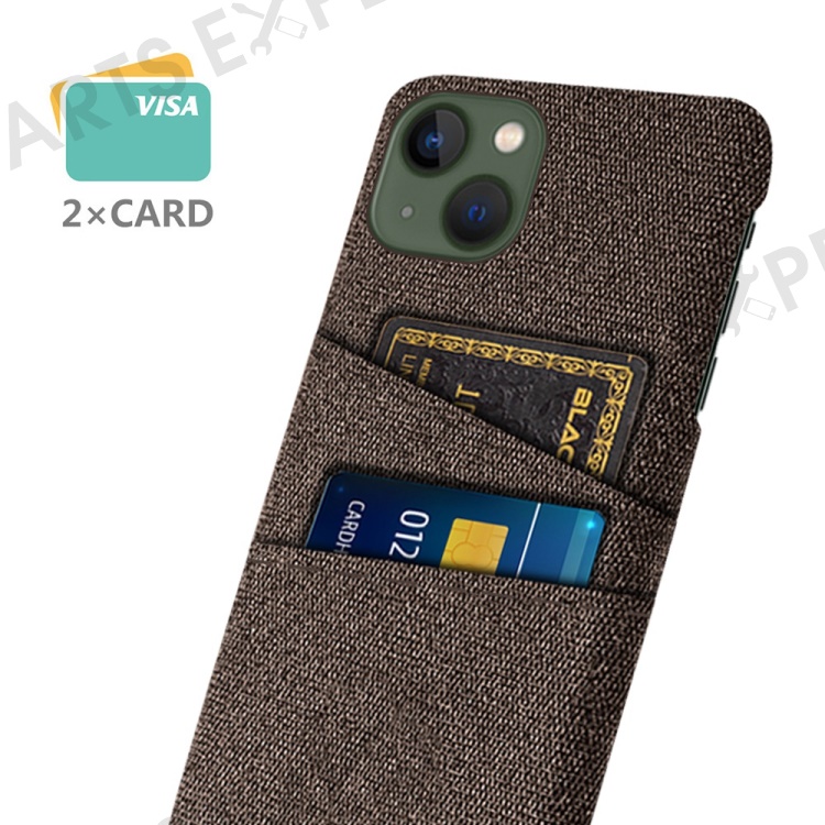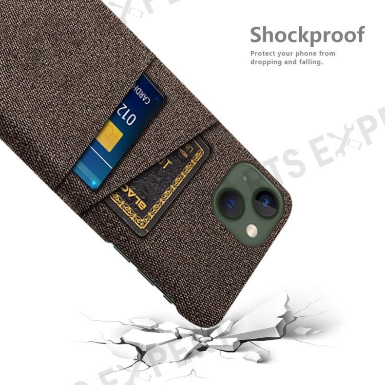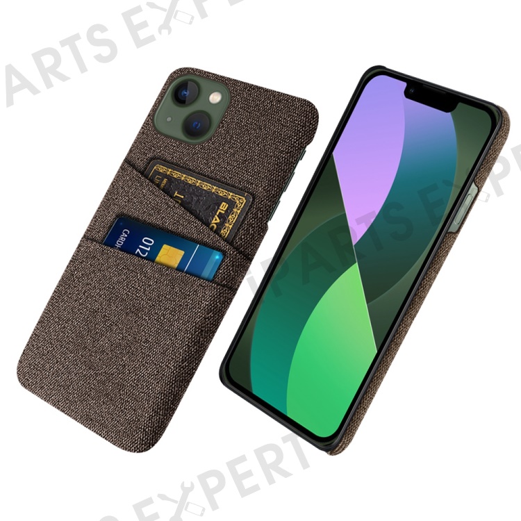 For iPhone 14 6.1 inch Cloth Texture Well-protected Phone Case Cloth + PC Cover with Dual Card Slots - Brown