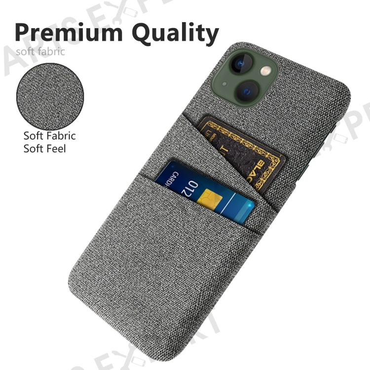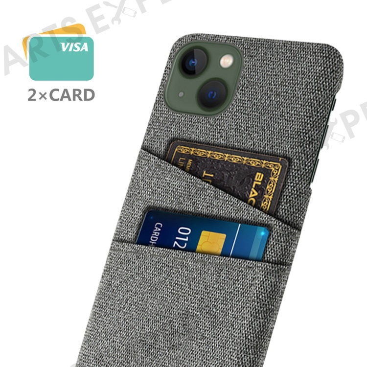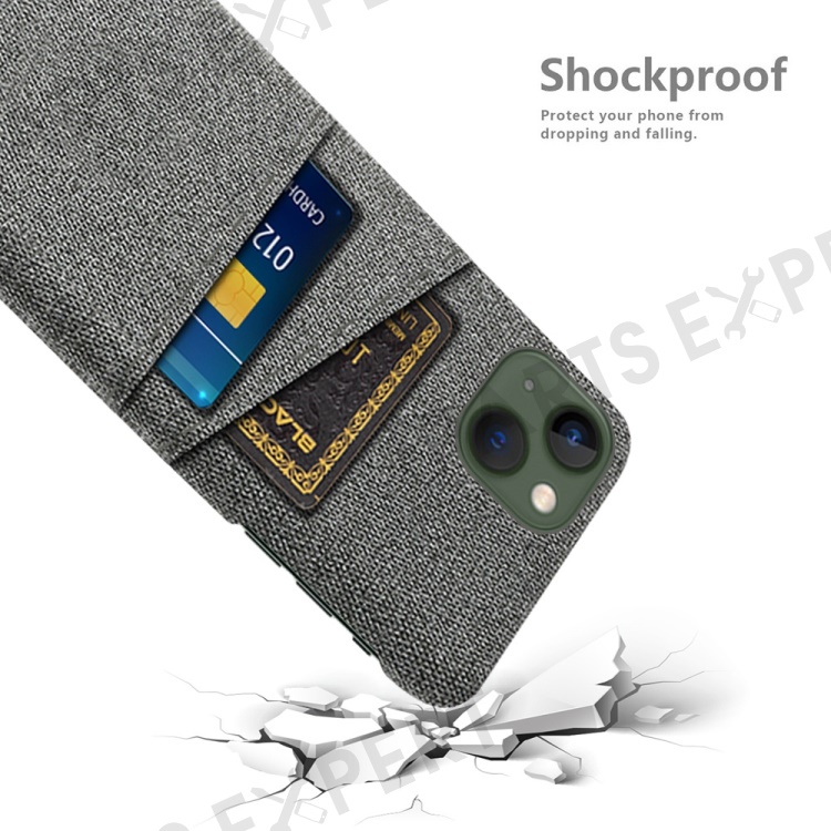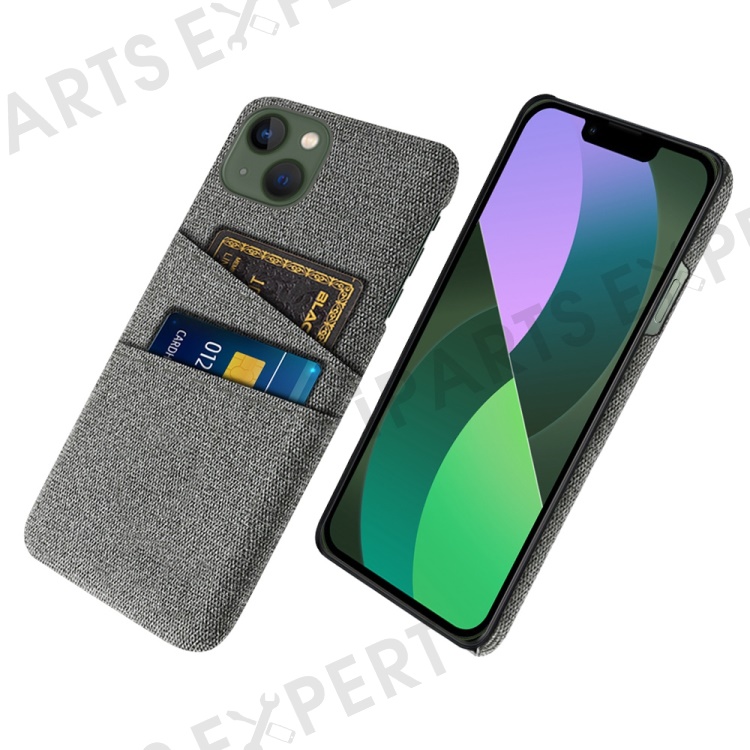 For iPhone 14 6.1 inch Cloth Texture Well-protected Phone Case Cloth + PC Cover with Dual Card Slots - Grey